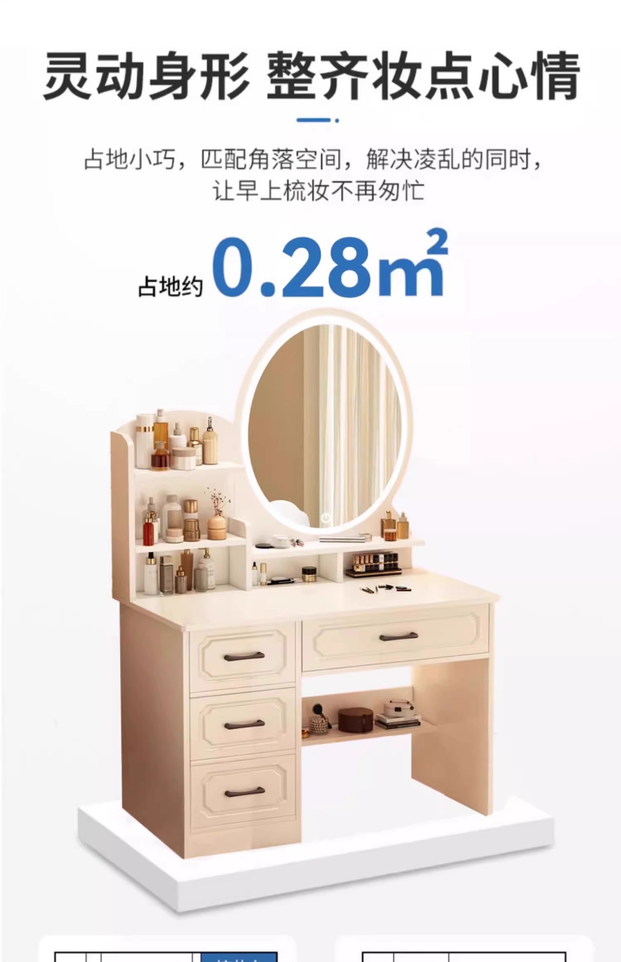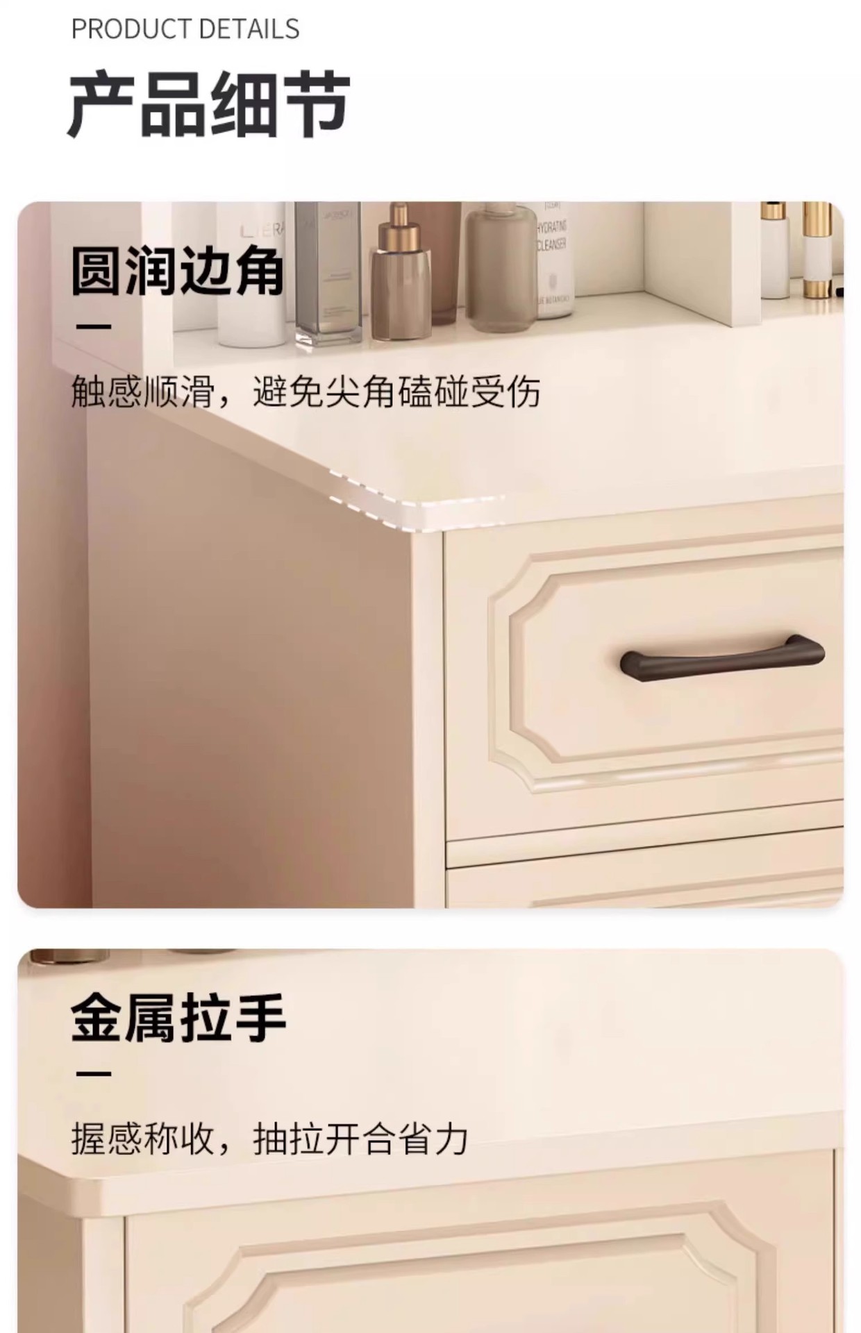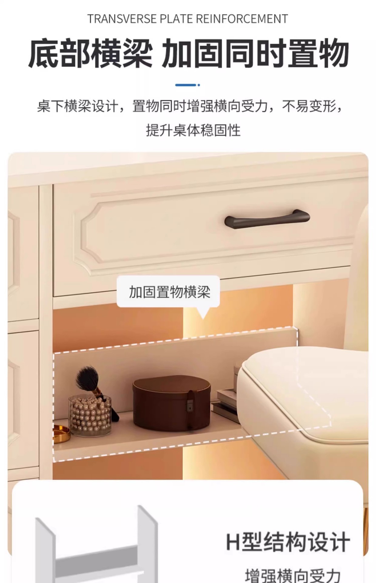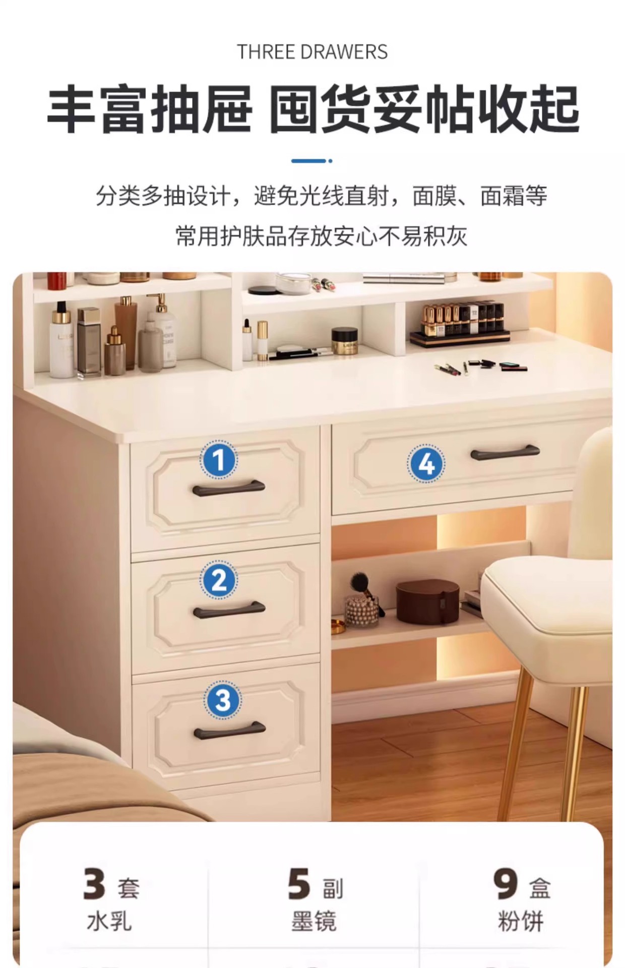 Tocador de estilo crema Dormitorio simple y moderno pequeño gabinete de maquillaje todo en uno 2024 nuevo escritorio de maquillaje tocador