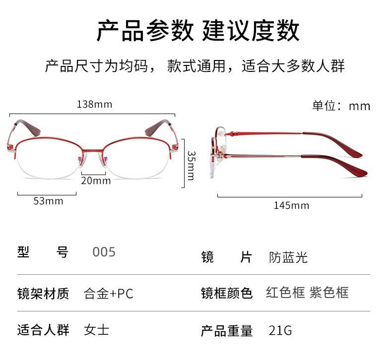 Gafas de lectura para mujer a la moda, elegantes y con estilo, anti-luz azul, protección ocular de alta definición, montura grande para personas mayores.