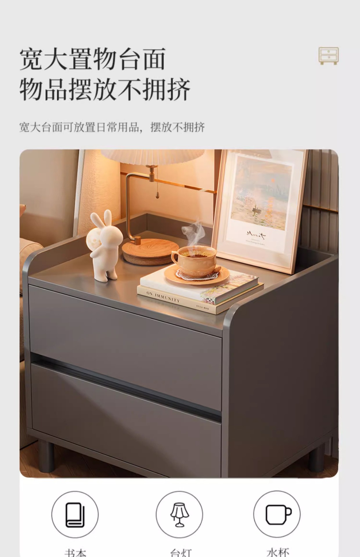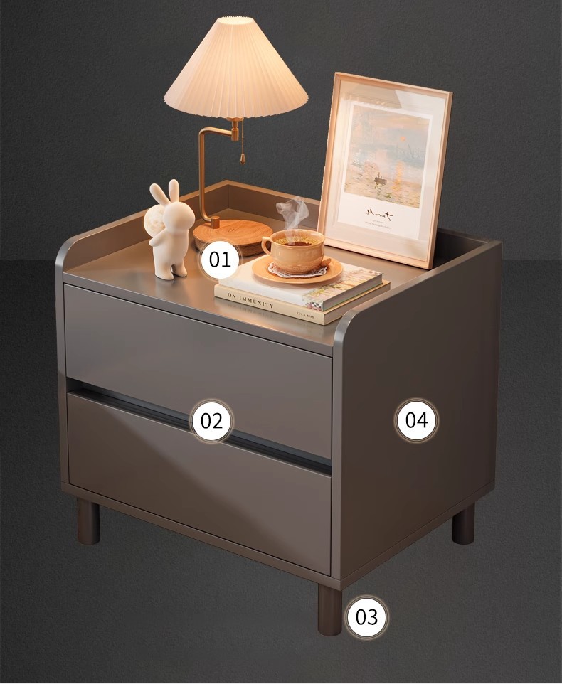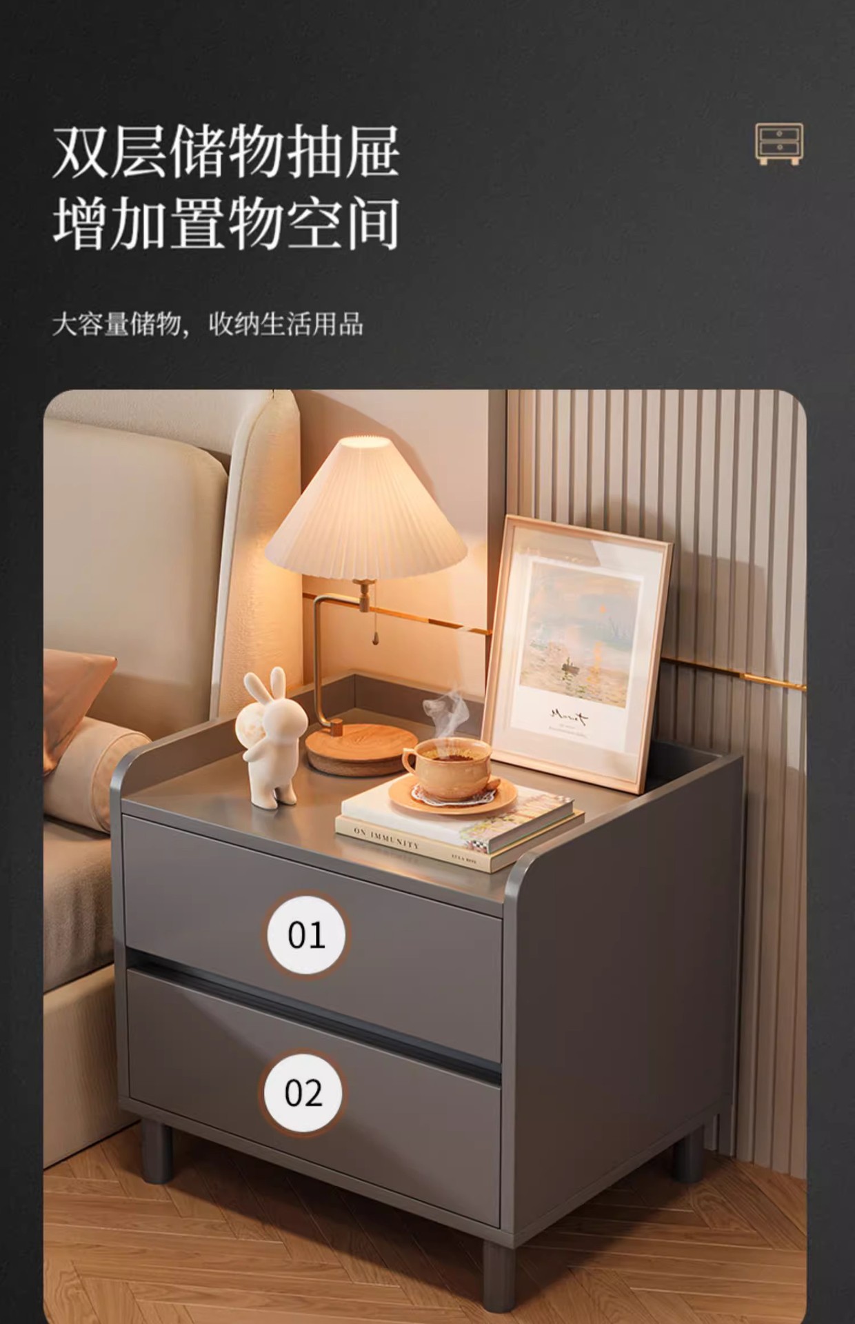 Mesa de cabecera italiana simple y lujosa moderna y alta sensación de estante de almacenamiento simple y de gran capacidad gabinete de almacenamiento de dormitorio