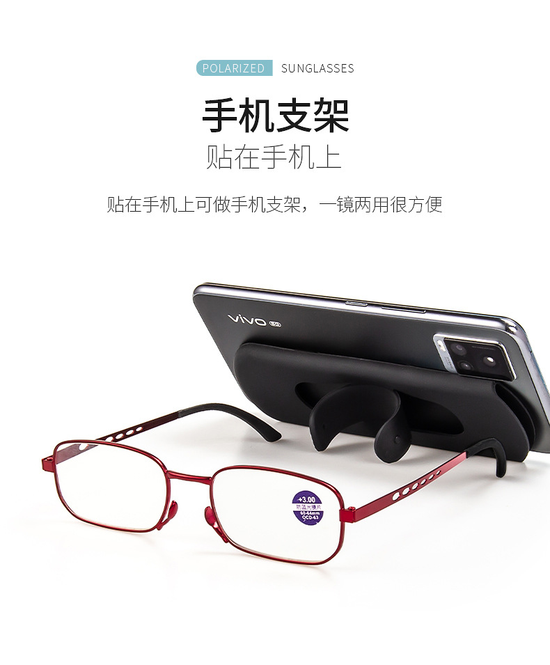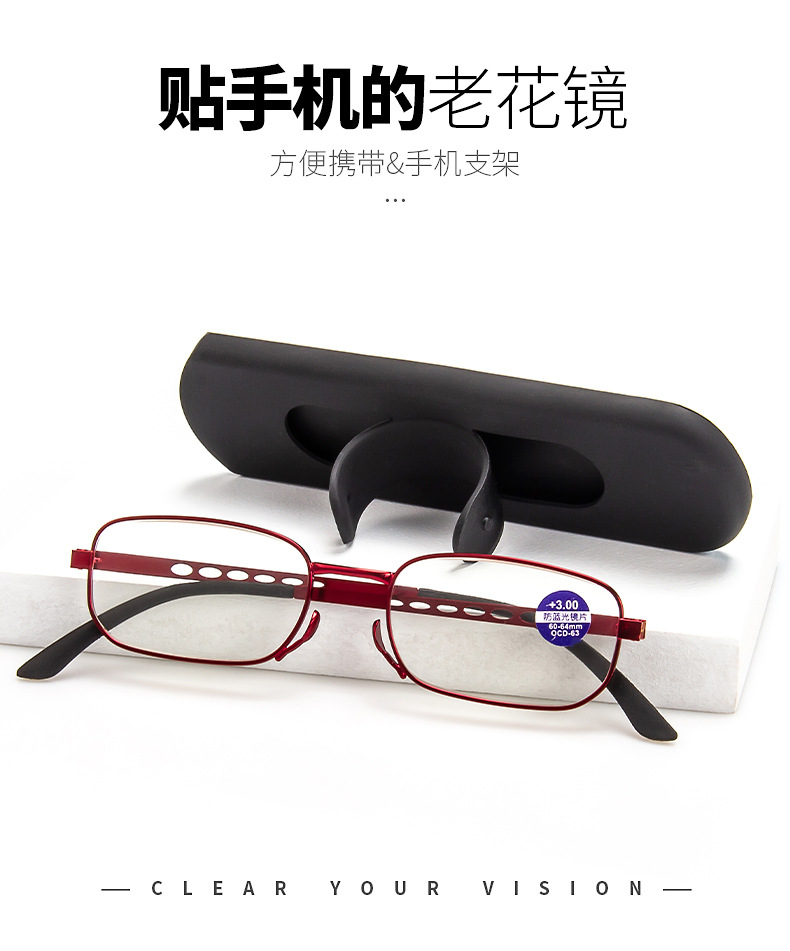 2022 nuevas gafas de teléfono móvil anti-marco de metal ligero azul soporte portátil gafas de lectura exquisitas de las mujeres gafas de lectura al por mayor