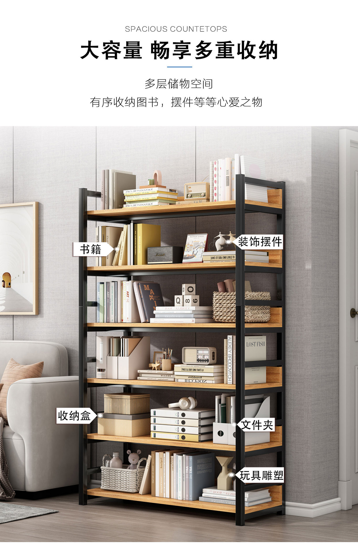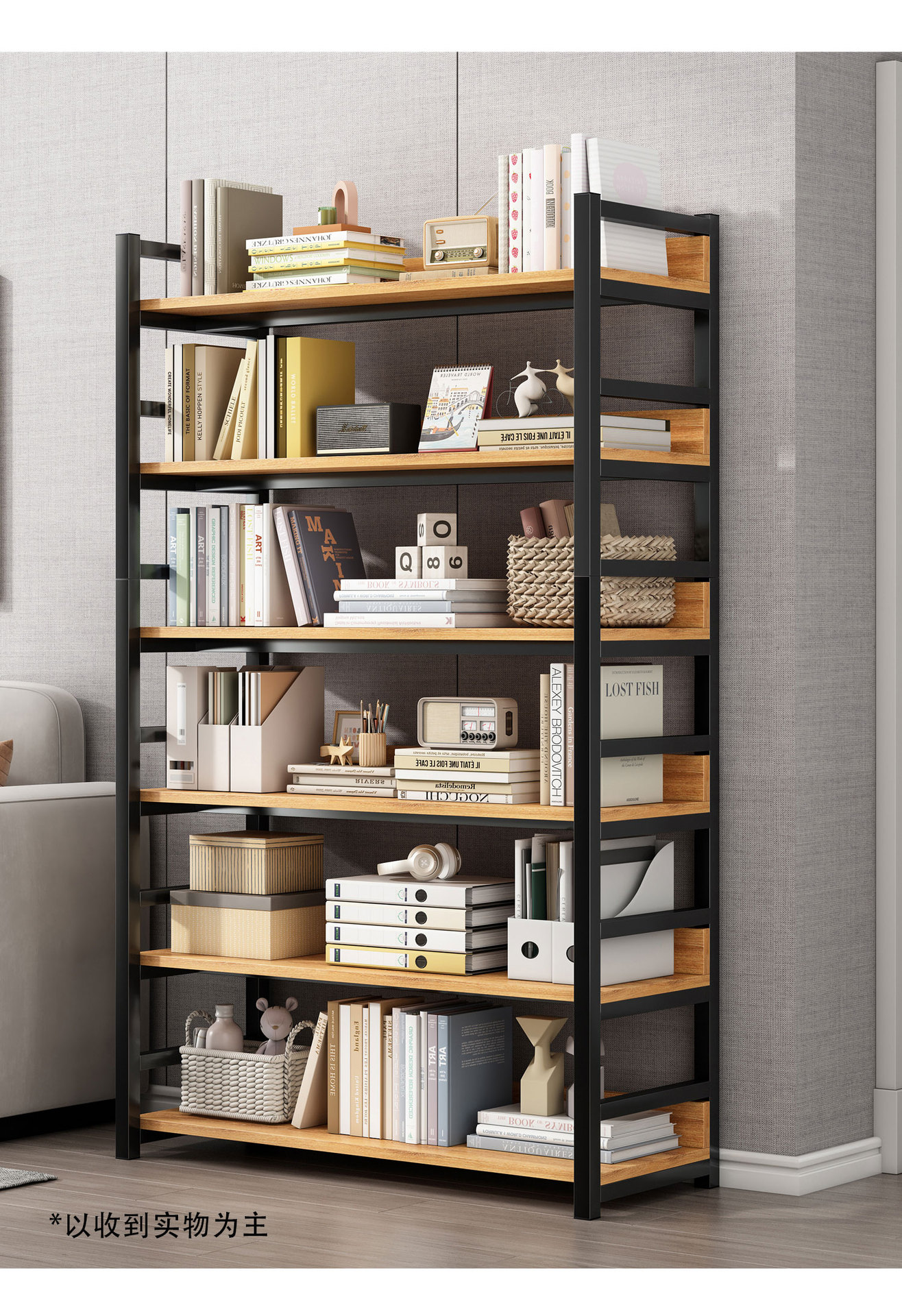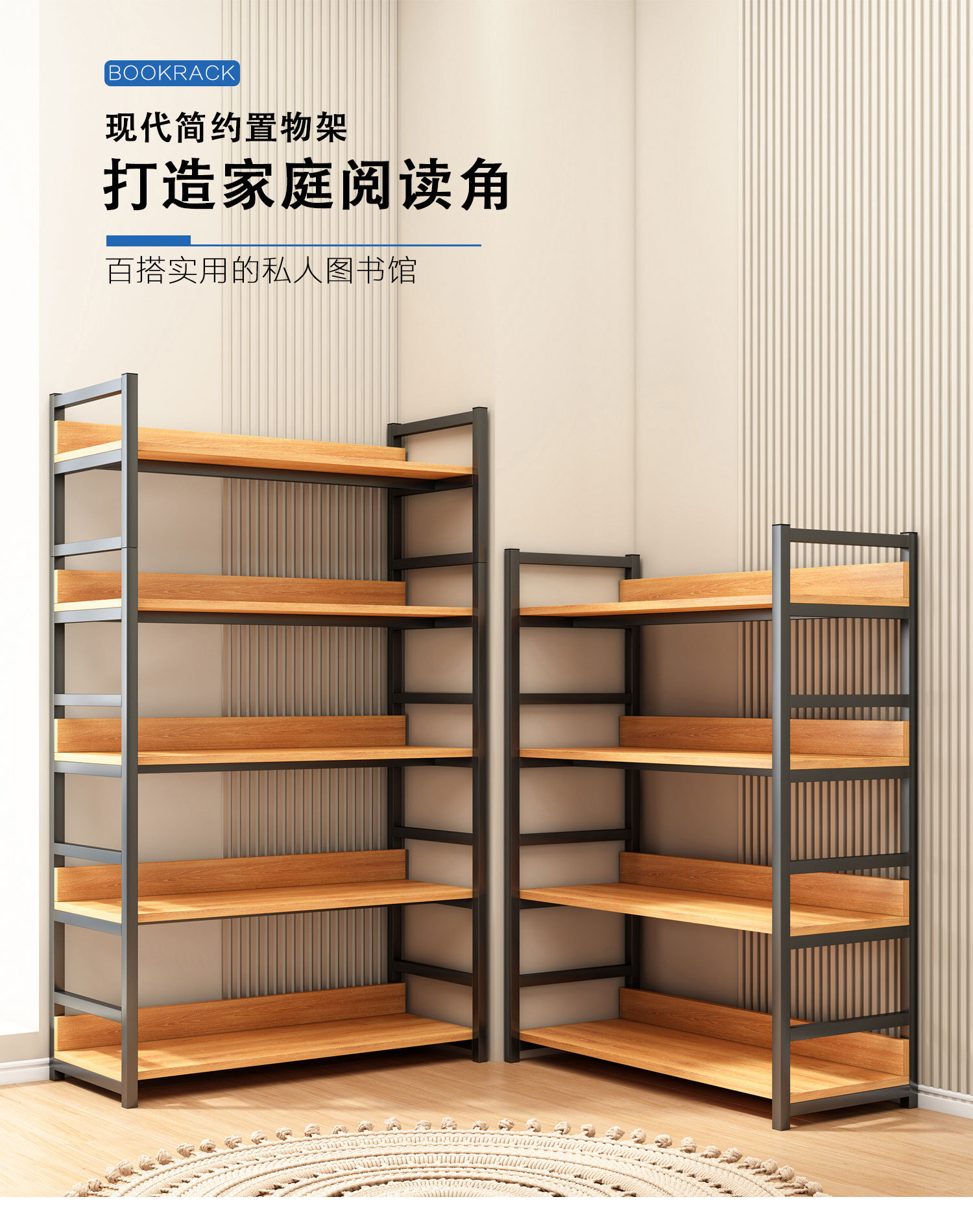 Estantería simple Estante de partición de piso a techo Estante de almacenamiento de hierro forjado para sala de estar para el hogar Estante de exhibición Estante de almacenamiento Estantería de acero y madera