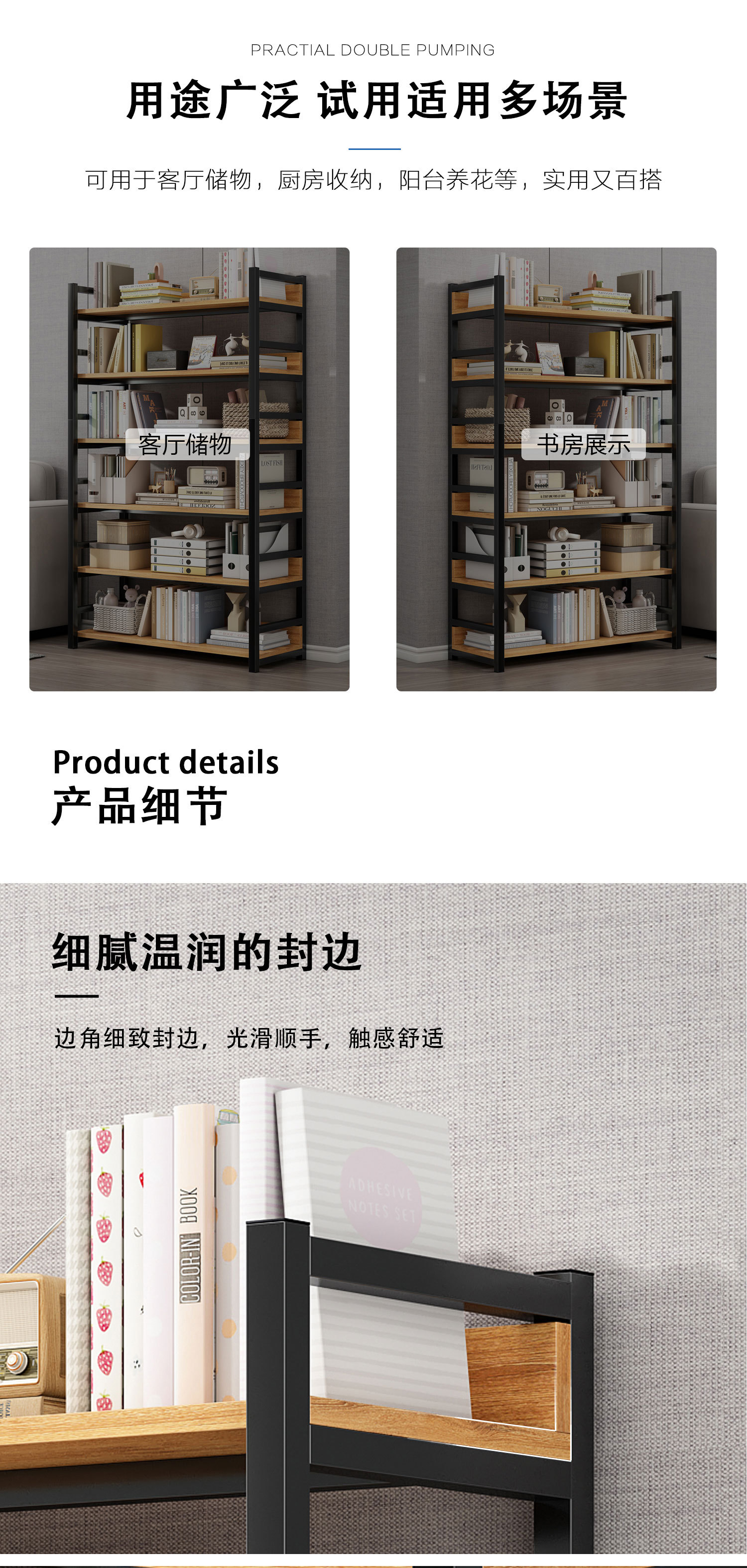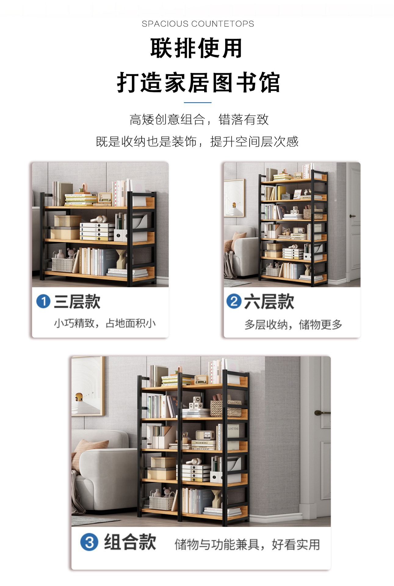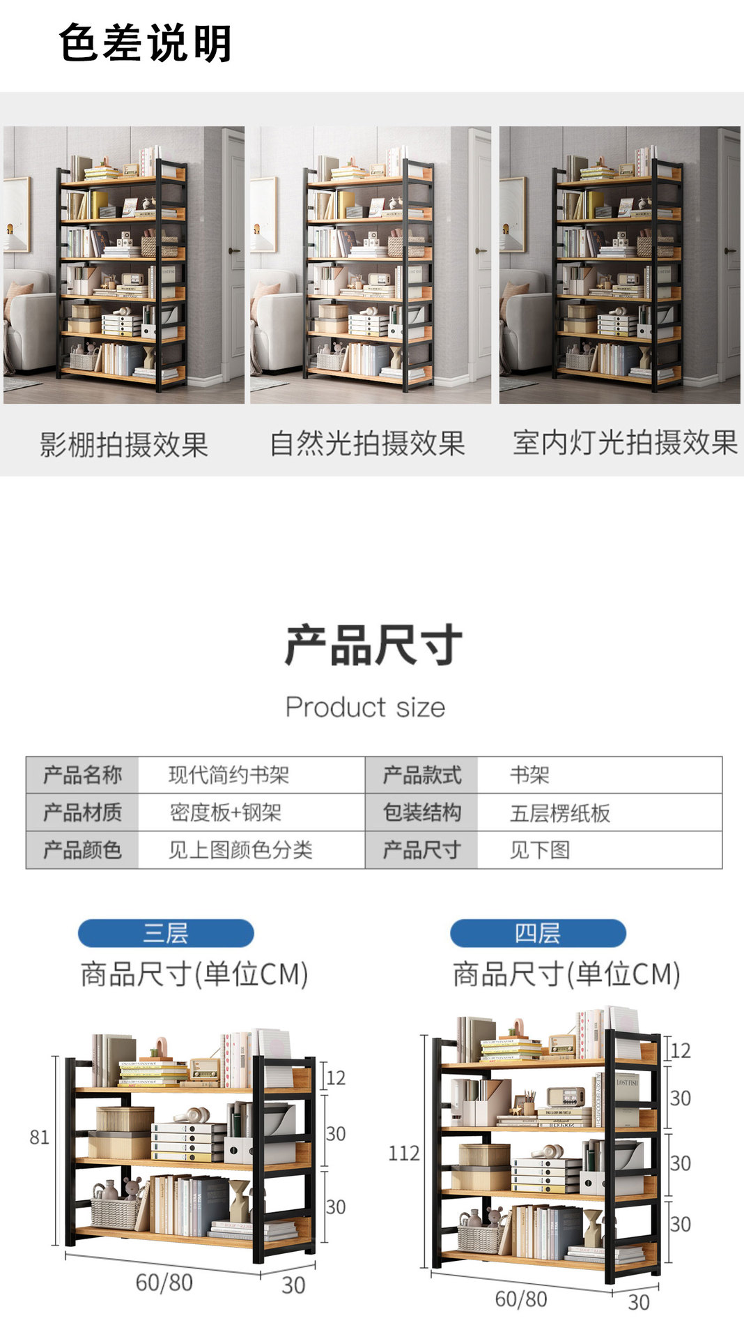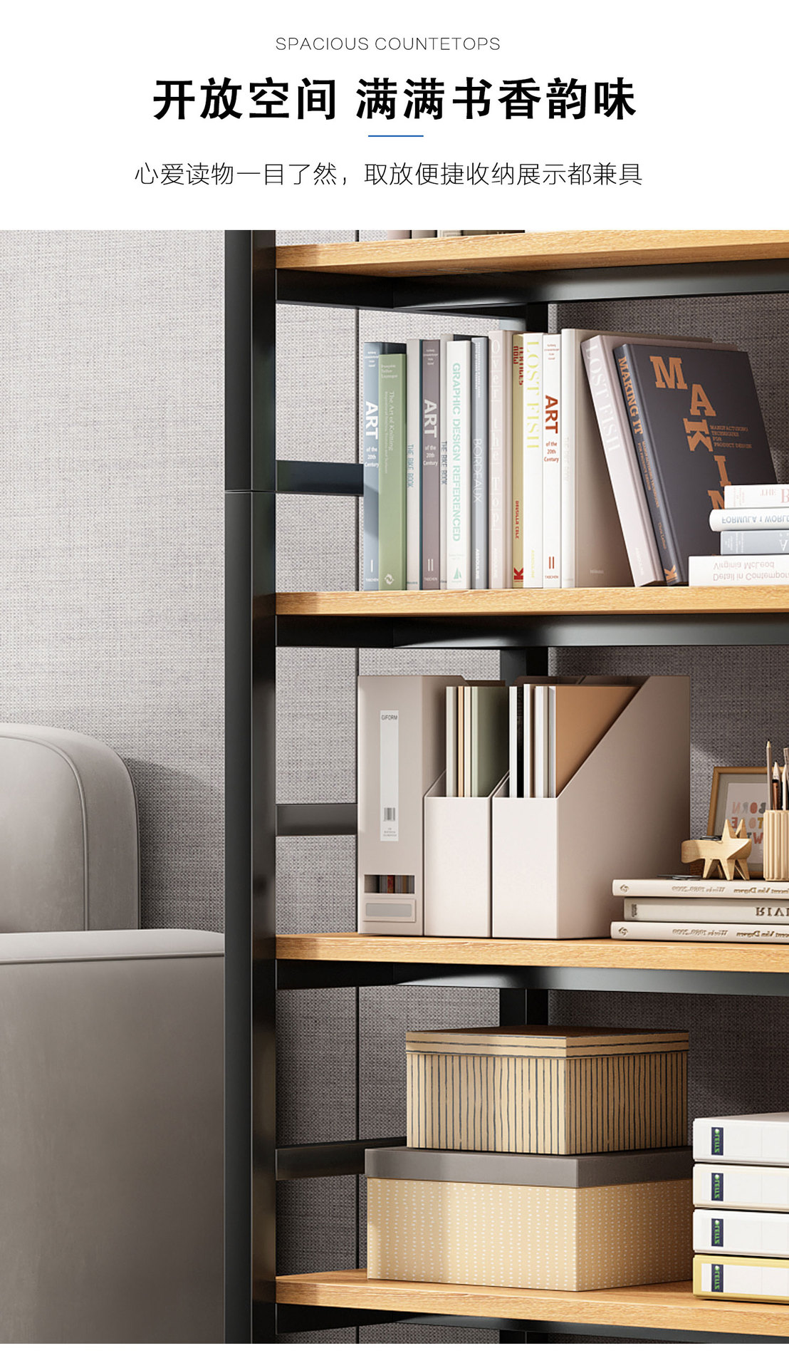 Estantería simple Estante de partición de piso a techo Estante de almacenamiento de hierro forjado para sala de estar para el hogar Estante de exhibición Estante de almacenamiento Estantería de acero y madera