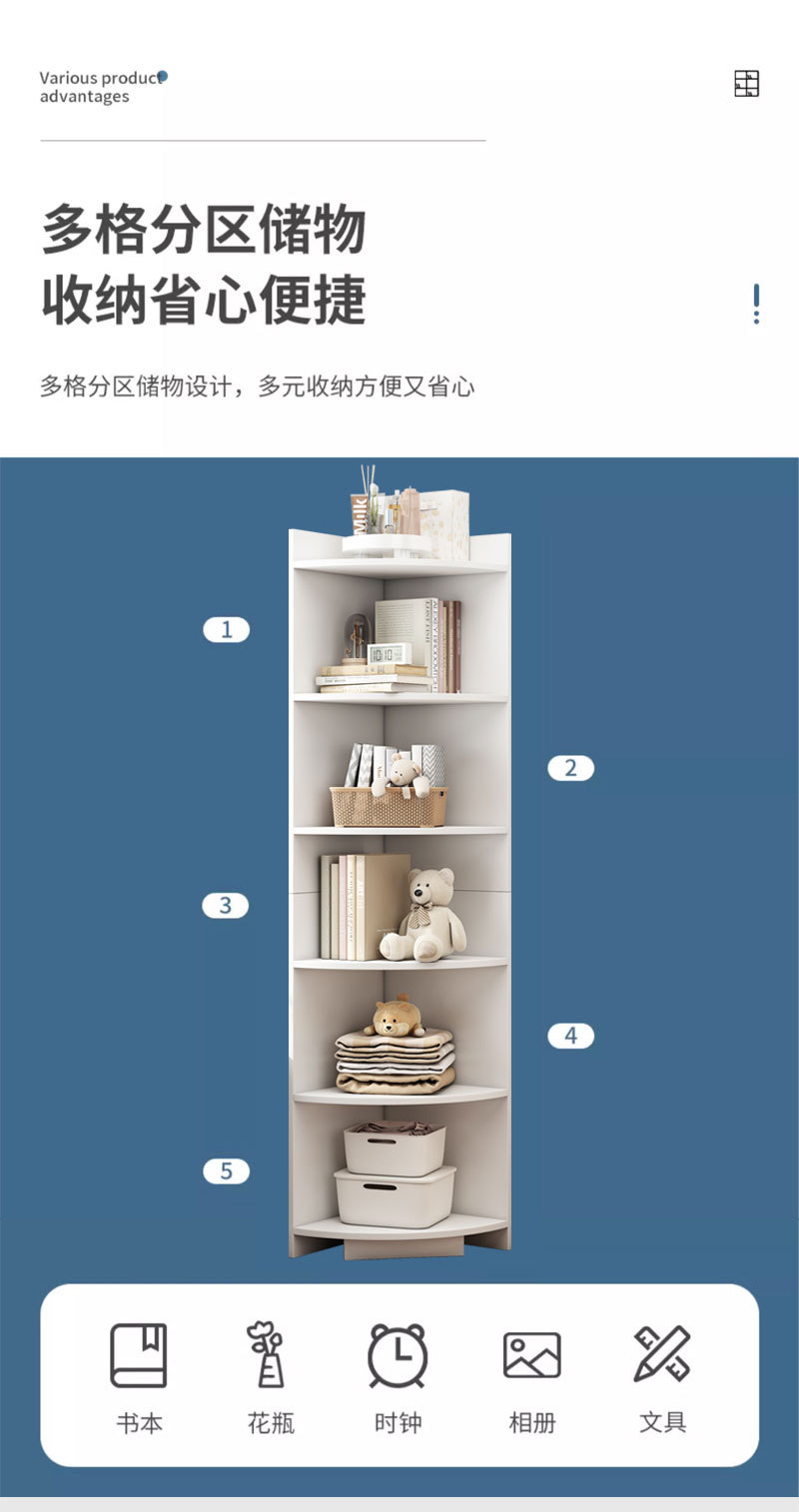 Estantería de piso estante de almacenamiento sala de estar esquina estante de almacenamiento dormitorio simple ahorro de espacio multi-capa estantería pared esquina gabinete