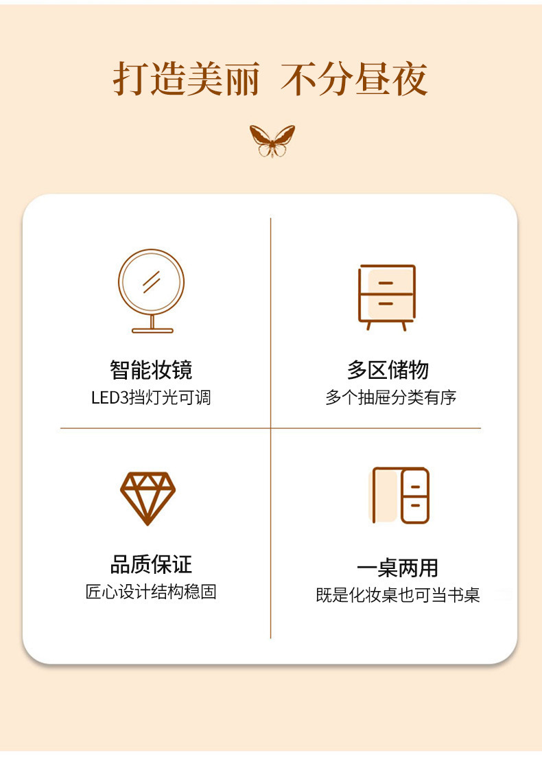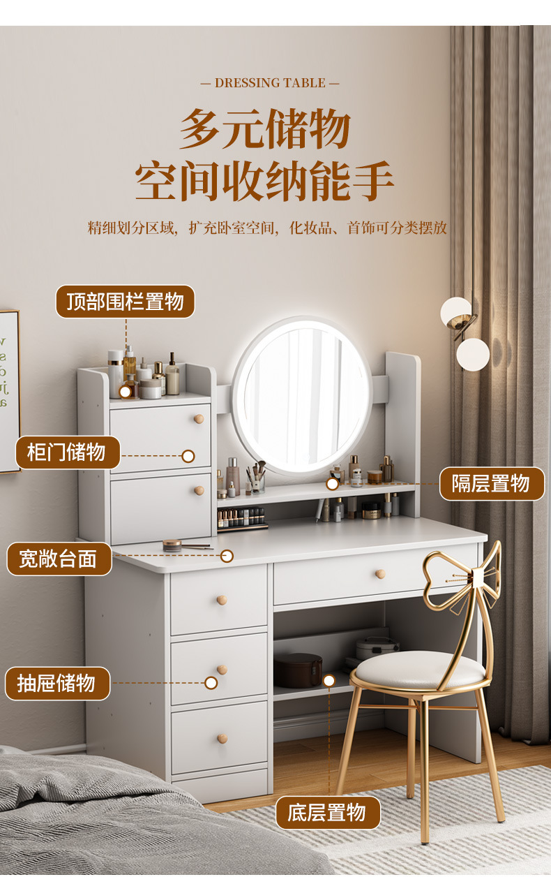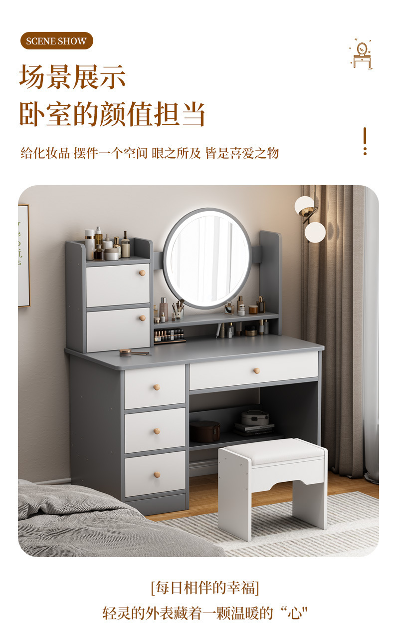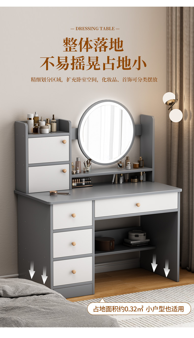 Tocador dormitorio simple moderno dormitorio principal pequeño apartamento Luz de lujo estilo escritorio gabinete de almacenamiento integrado espejo de maquillaje mesa de maquillaje