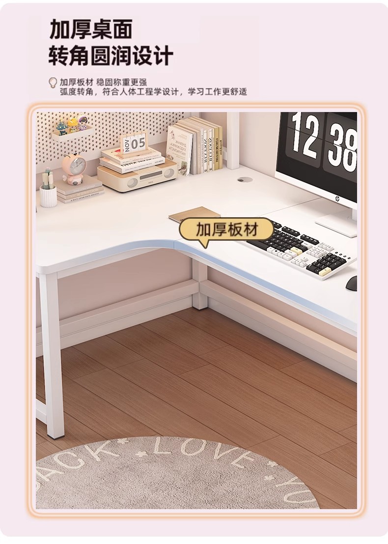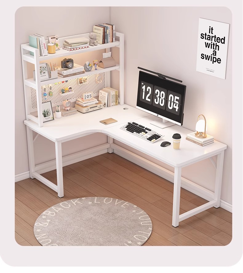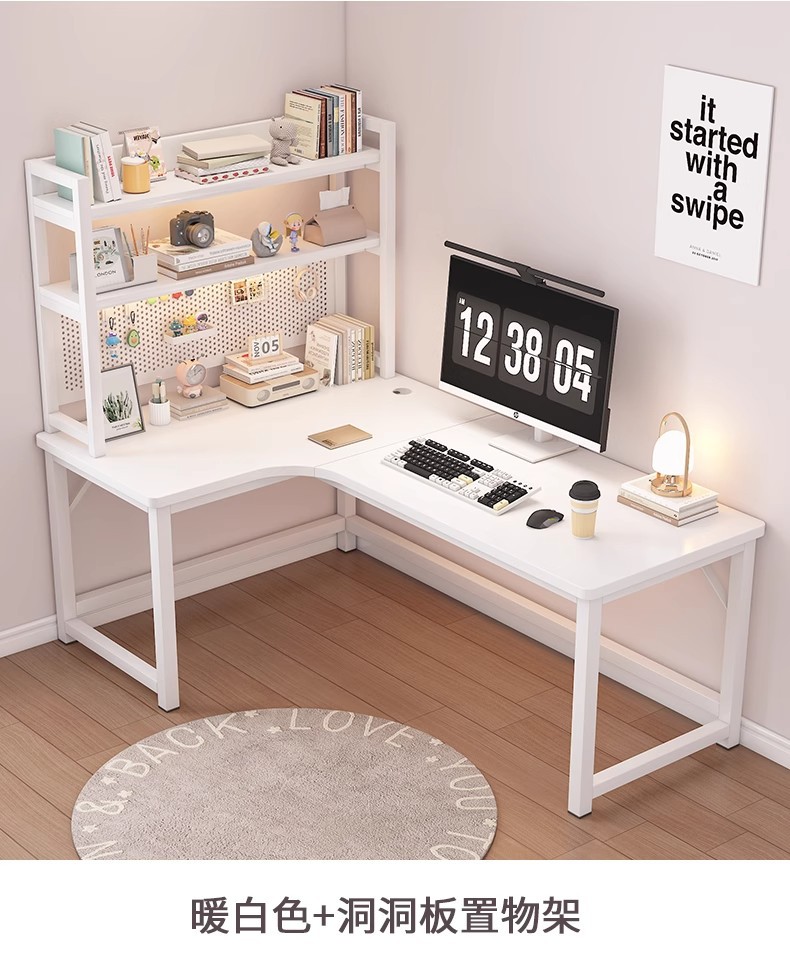 Escritorio de esquina de estilo crema, escritorio de aprendizaje para el hogar, estantería, escritorio de una pieza, tablero de agujero de esquina, escritorio de computadora de escritorio simple
