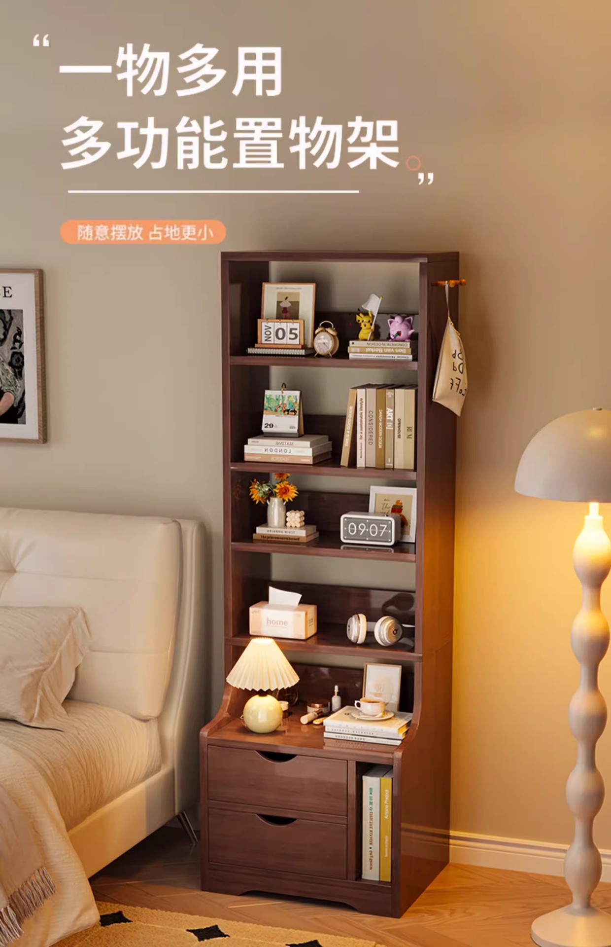 Tablero de cabecera simple y moderno tipo pequeño estante de almacenamiento multifuncional estante de libros de dormitorio casero armario de cabecera