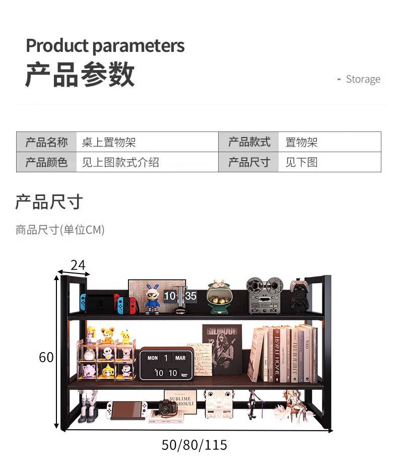 Estante de escritorio de oficina multicapa estante pequeño estante de libros simple estante de hierro forjado pequeño estante de almacenamiento en el escritorio