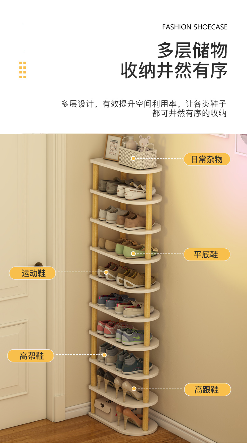 Zapatero hogar económico pequeño zapato gabinete interior hermoso simple Puerta de almacenamiento artefacto madera maciza de múltiples capas de almacenamiento de rack