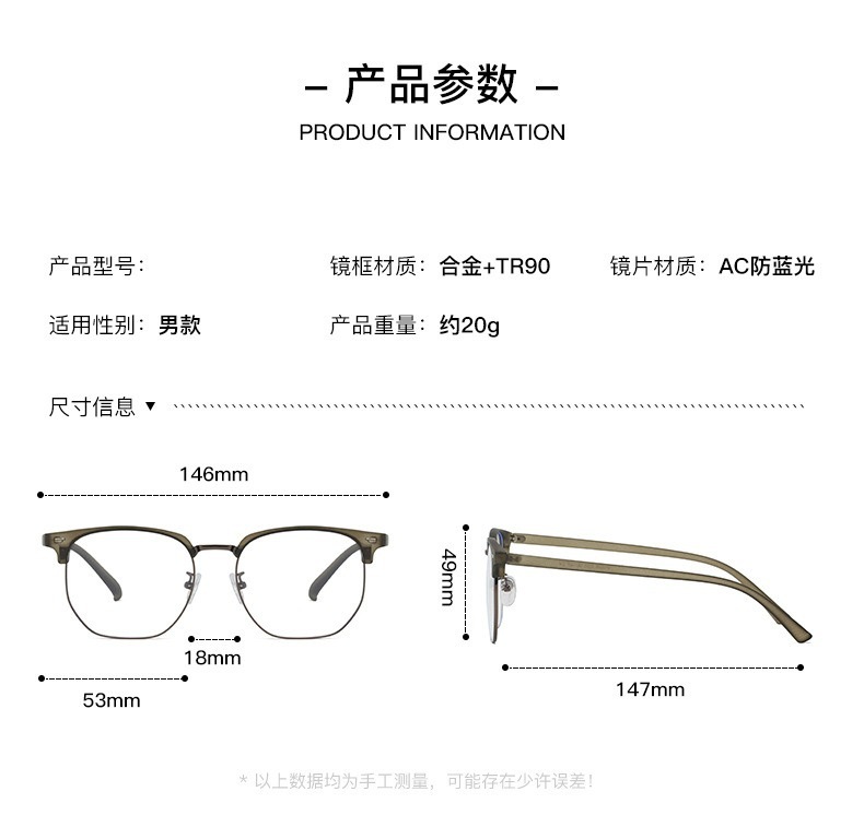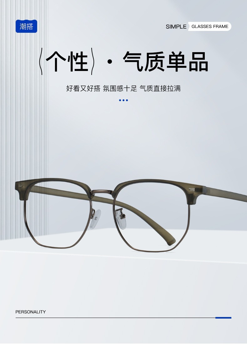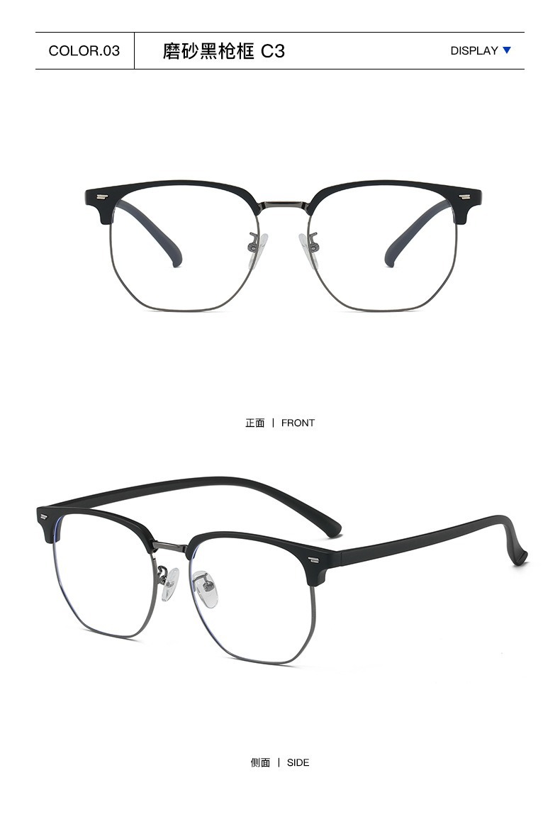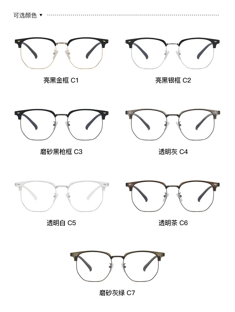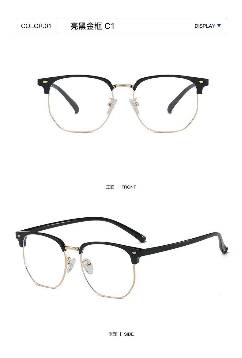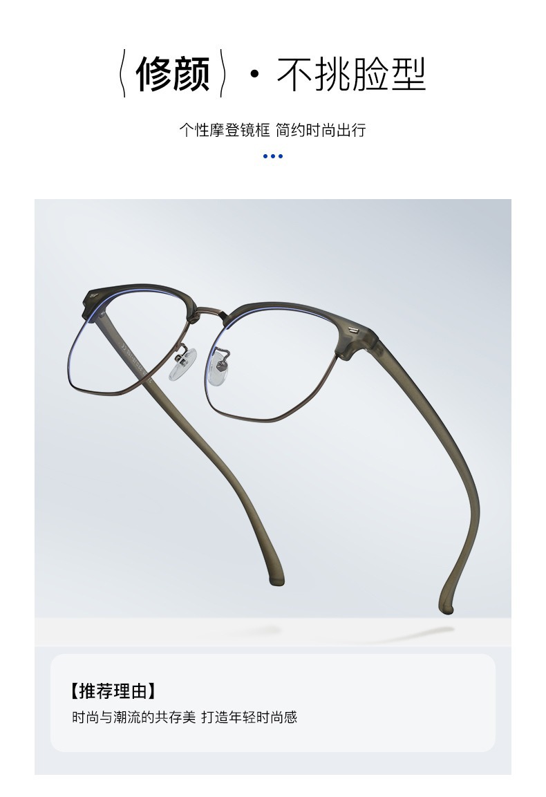 Retro Harajuku gafas de viento TR90 medio marco de gafas de luz metálicas para mujeres miopía puede equiparse con un marco de gafas anti-luz azul para hombres