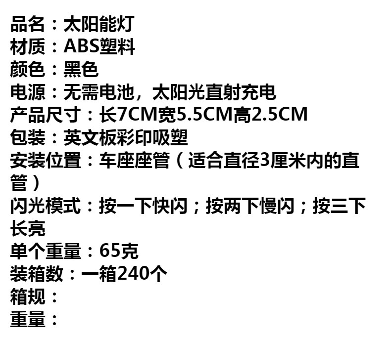 | Color | Luz trasera solar |
