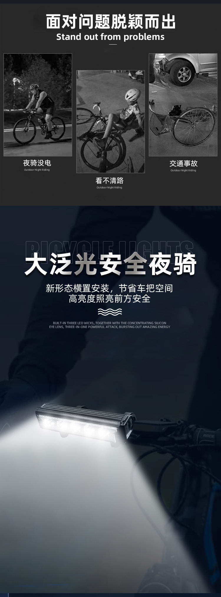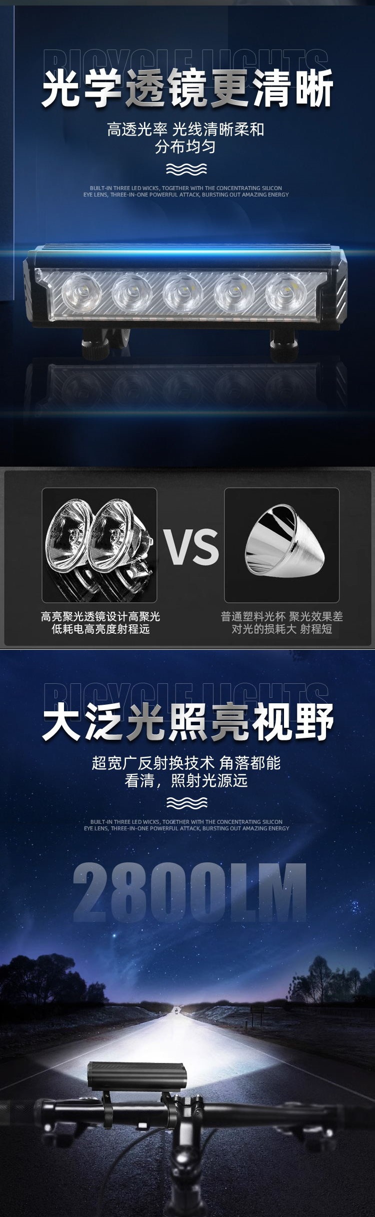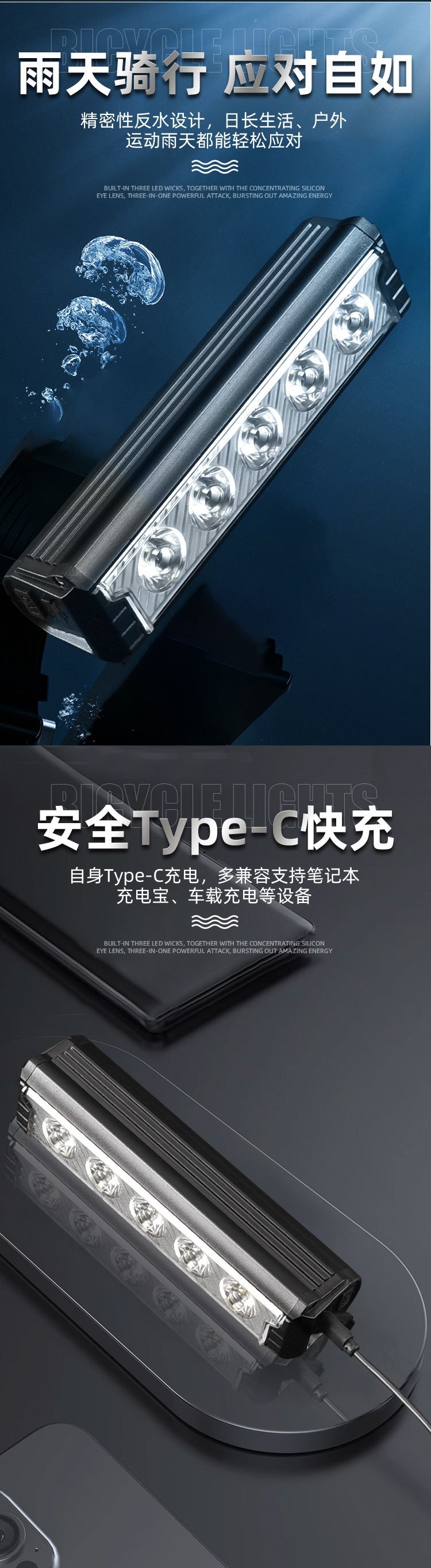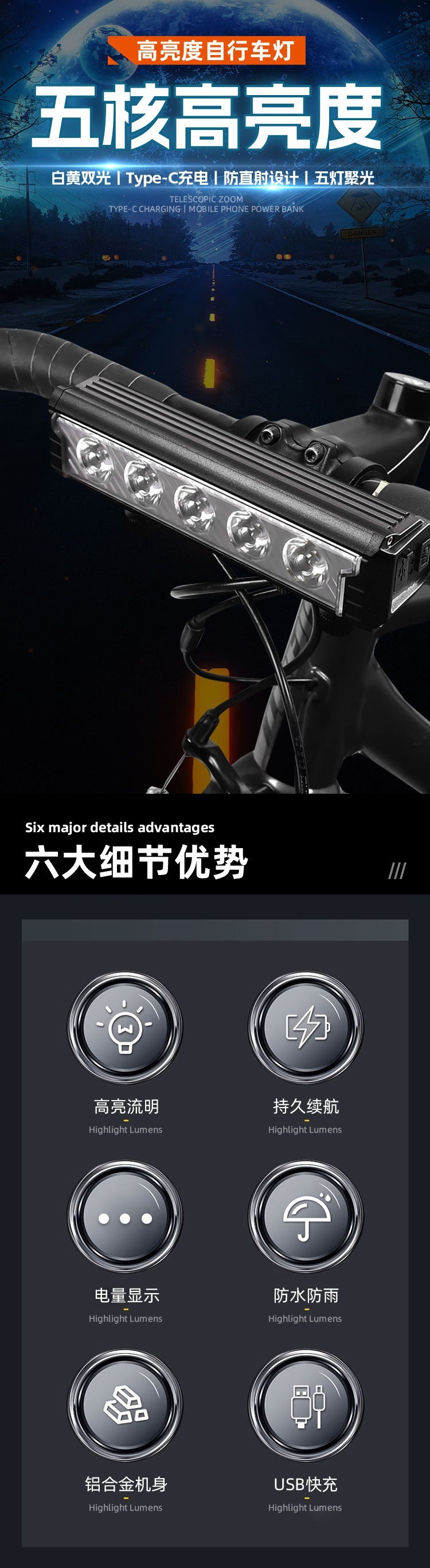 Nueva luz para bicicleta con carcasa de aleación de aluminio, faro USB para bicicleta, linterna para ciclismo nocturno, accesorios para exteriores.
