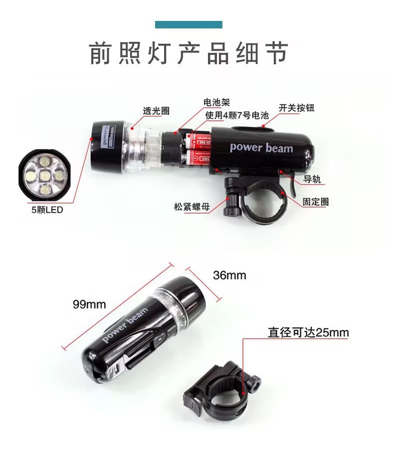 Luz para bicicleta, faro para ciclismo nocturno, linterna de 5 LED para bicicleta de montaña, equipo para ciclismo nocturno, linterna para manillar