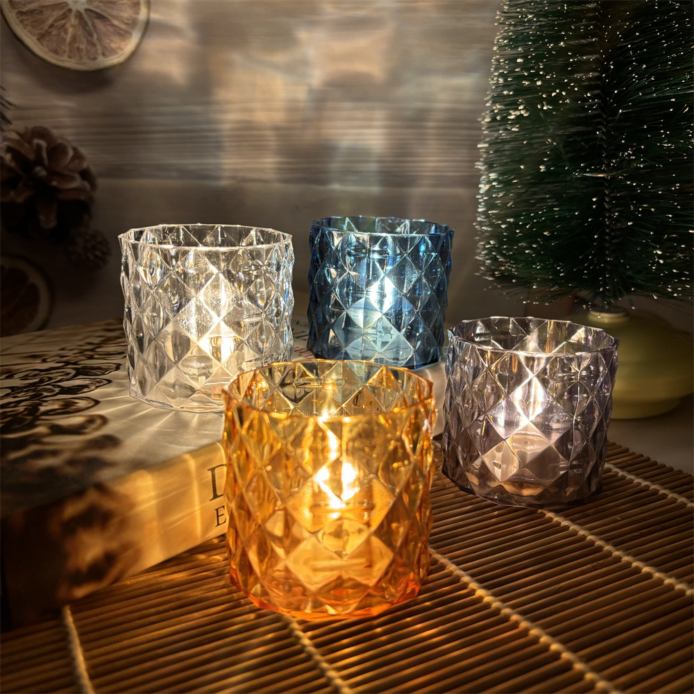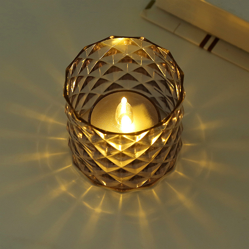 Lámpara de vela transfronteriza LED taza de cera de té taza de vidrio luminoso iluminación taza de cristal accesorios de mesa estilo europeo