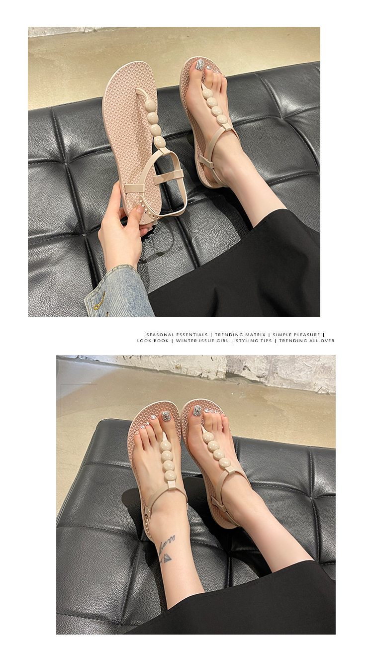 Sandalias del dedo del pie de las mujeres 2024 nuevas sandalias planas de la manera del verano más los zapatos romanos de la playa del estilo del estudiante del tamaño