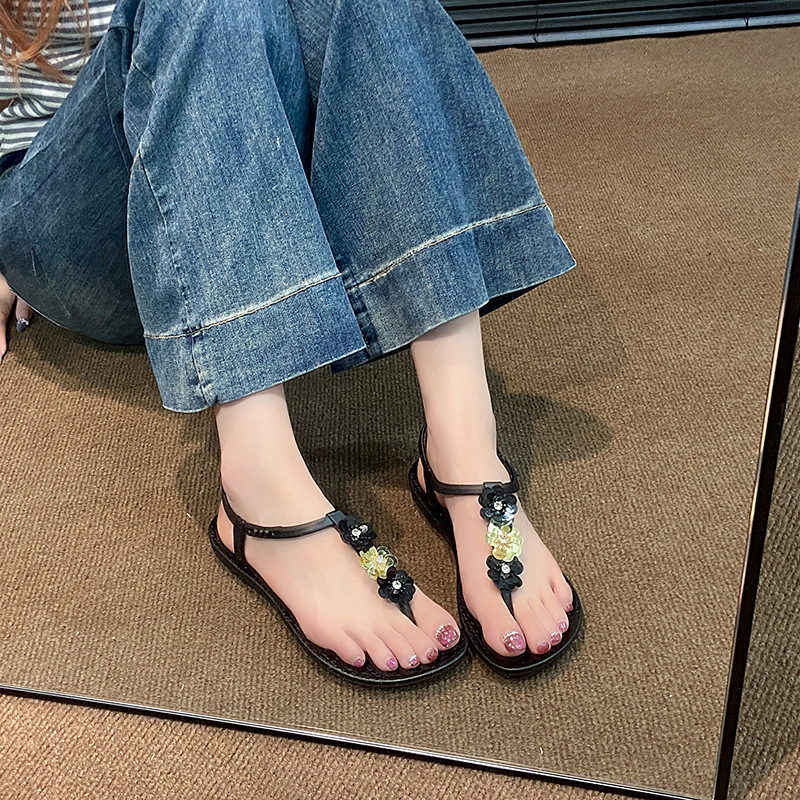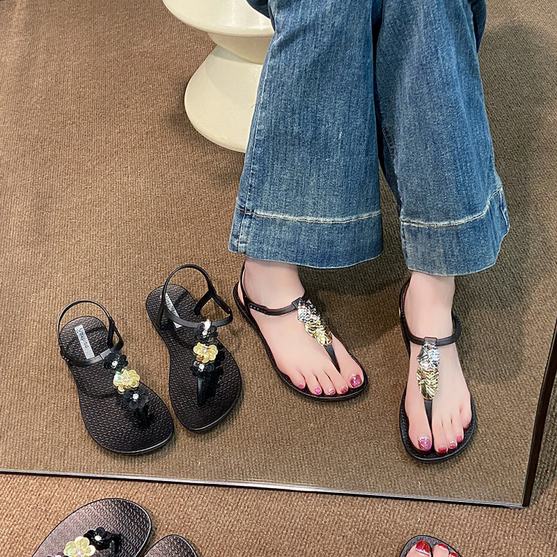 2025 nuevos zapatos de playa zapatillas de moda de verano para mujeres en el mar pendiente de fondo grueso talón clip zapatillas de flip flops al por mayor