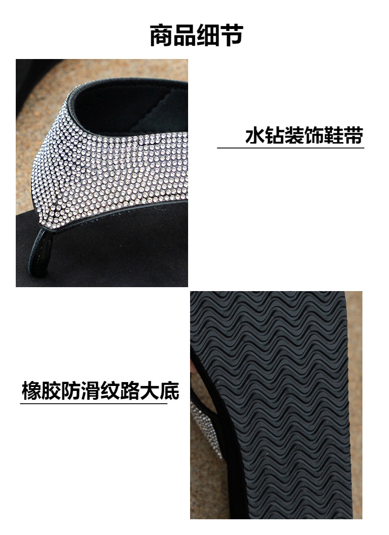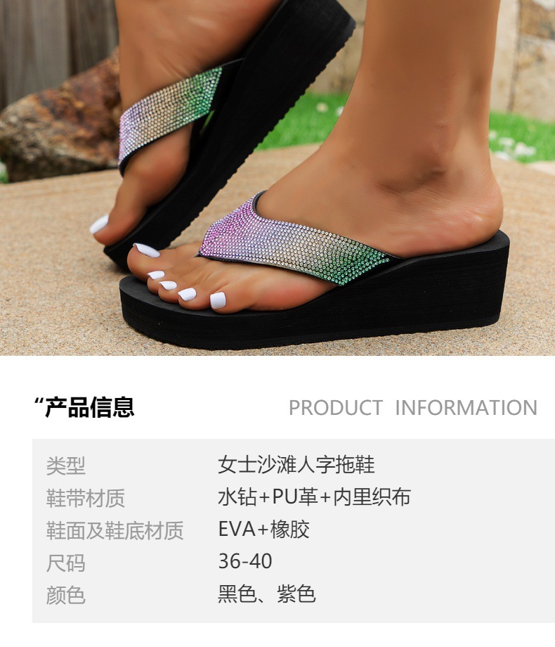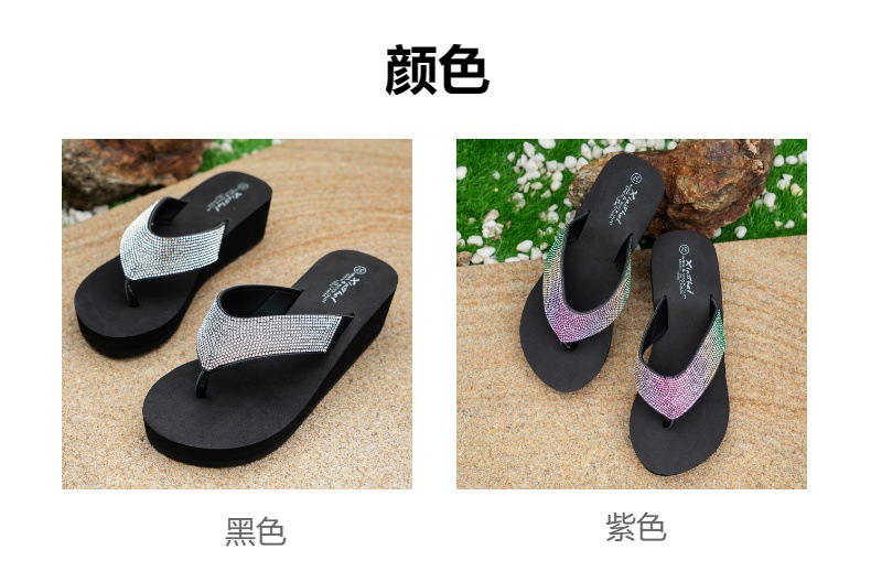 Verano ligero tacones de pendiente de tacones de slippery damas de diamante de soleas gruesas sandallas de playa aumentadas