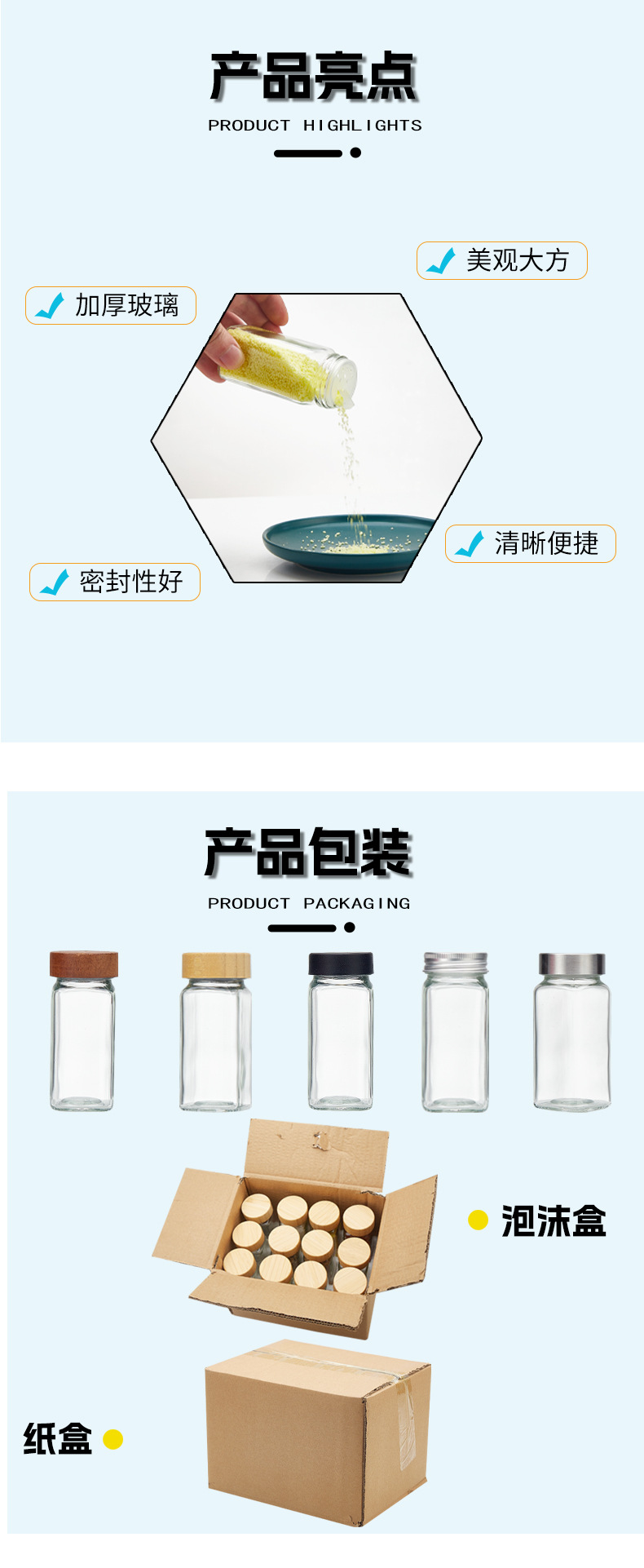 Botella de condimento de cocina cuadrada, frasco de vidrio transparente sellado, botella de condimento, botella de embalaje, botella conveniente de almacenamiento de pimienta