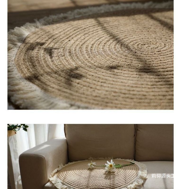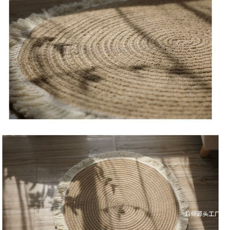 Alfombra de suelo con flecos tejidas de yute nórdico, balcón, algodón y lino, alfombra semanal, cama de familia, mesa de centro, dormitorio redondo, Li Yang