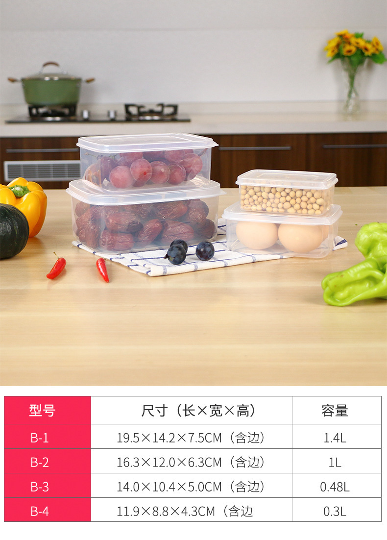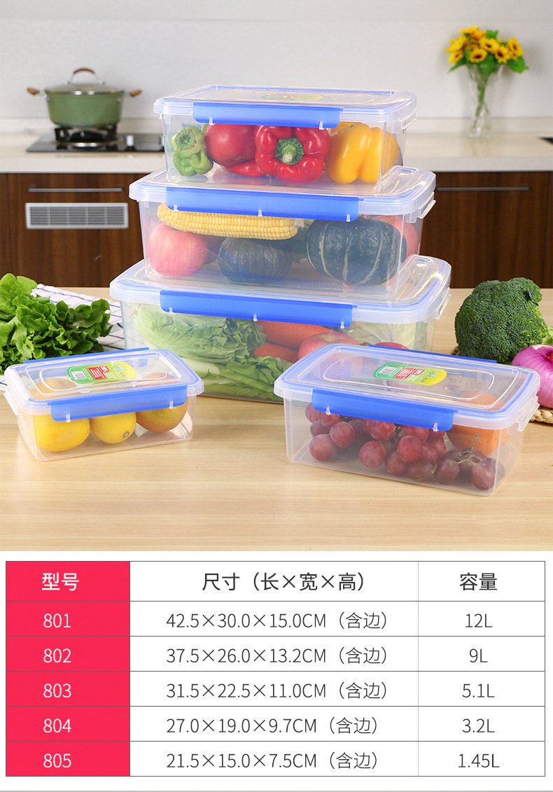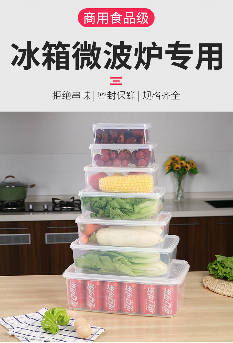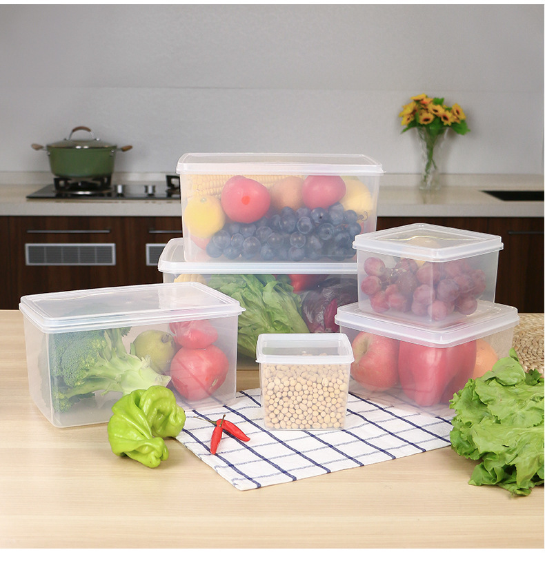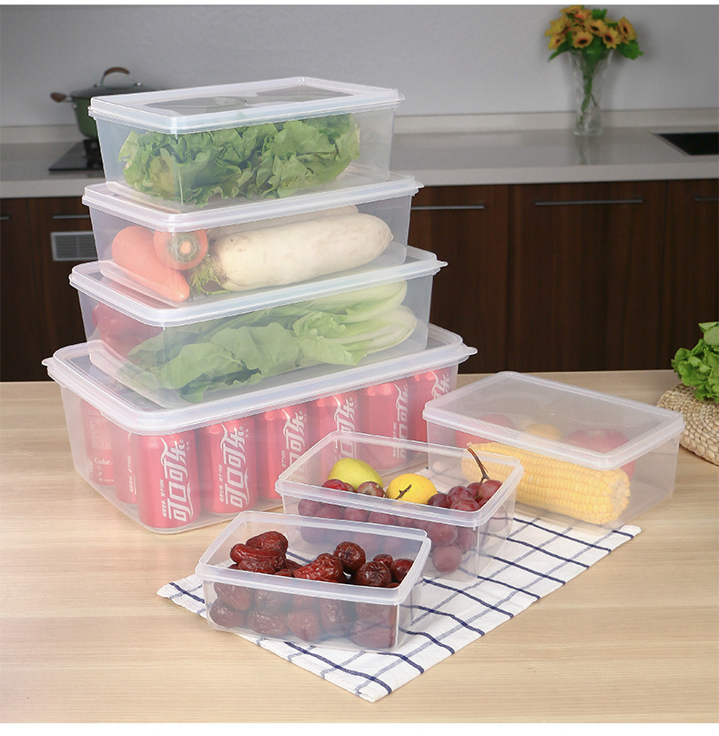 Caja de plástico transparente caja de preservación caja de sellado rectangular refrigerador caja de almacenamiento de alimentos fabricantes comerciales al por mayor