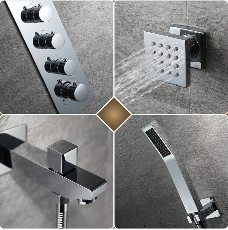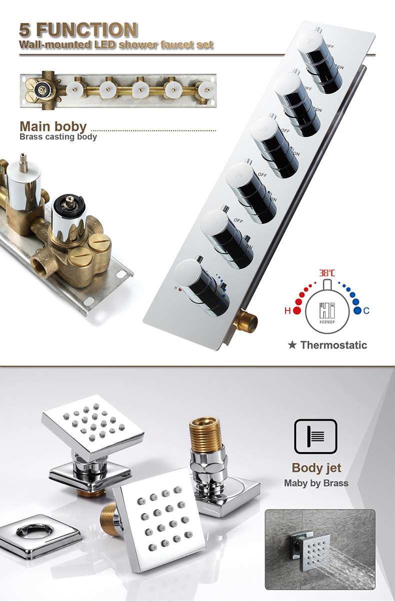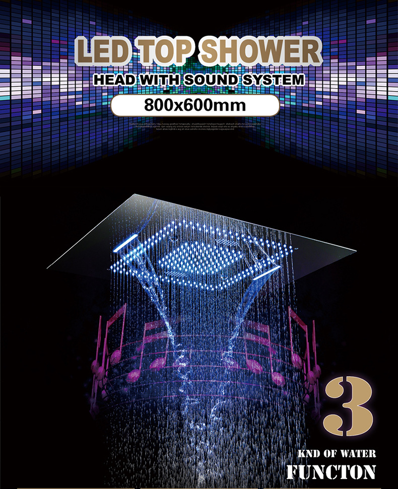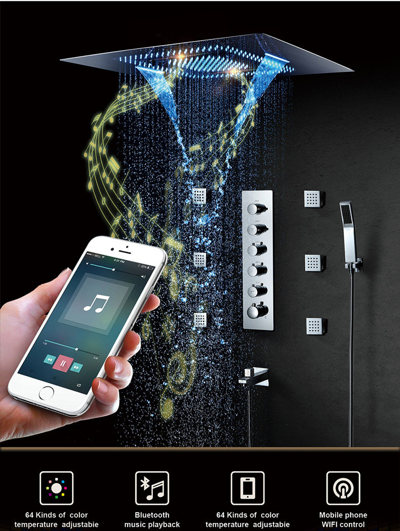 Ducha oculta montado en la pared control inteligente música altavoz LED temperatura constante incrustado cascada rociador superior HI05044B