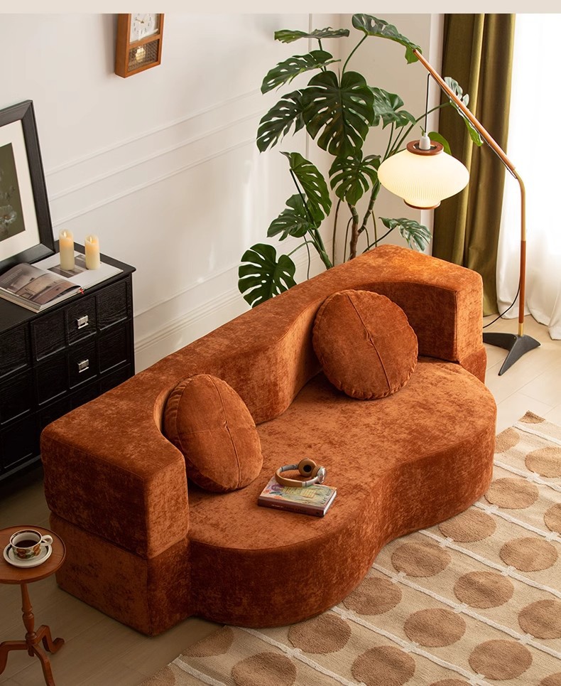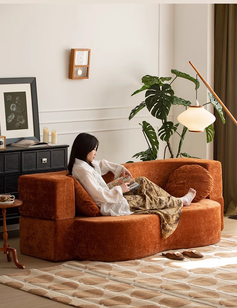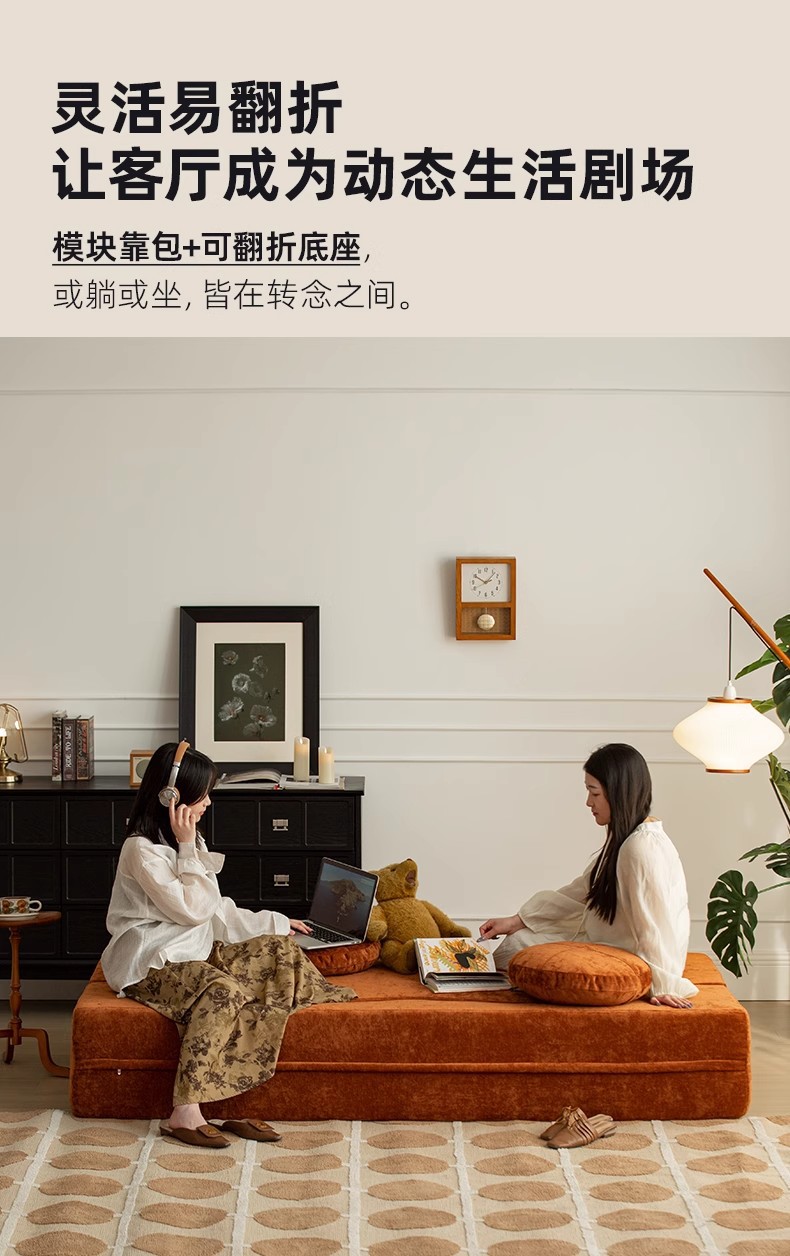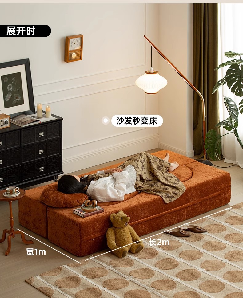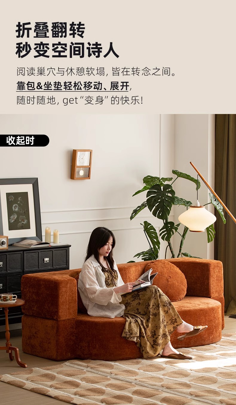 Sofá de compresión módulo de estilo antiguo sofá cama plegable de doble uso sala de estar sofá de tela de bloque de tofu retro doble