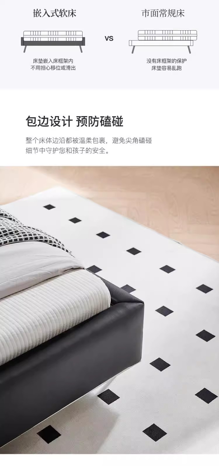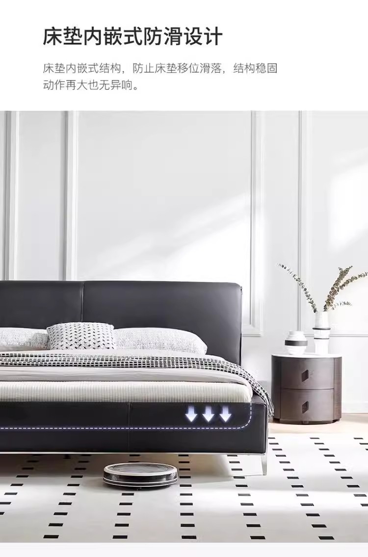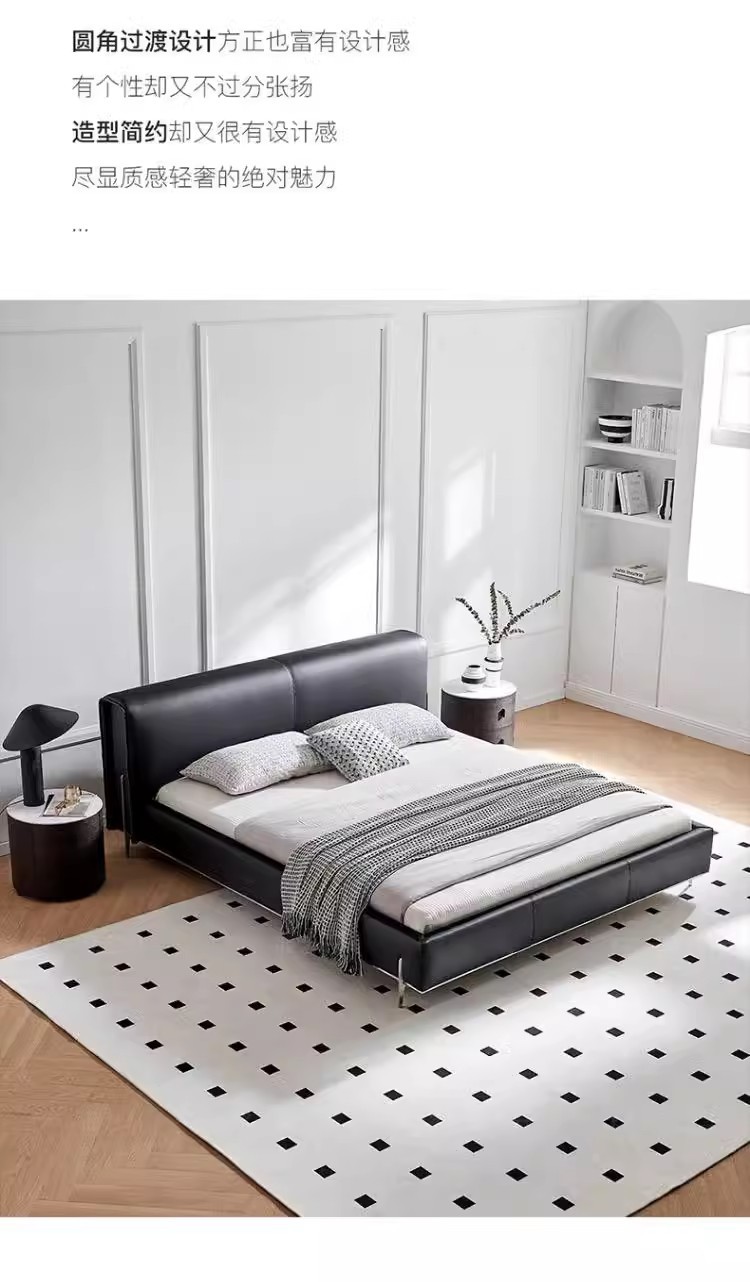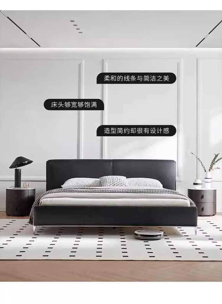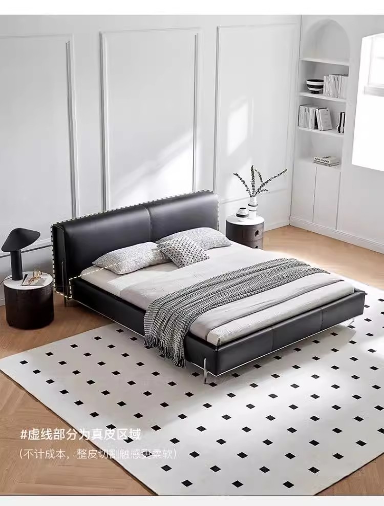 Diseñador minimalista italiano gran cama de cuero negro de vaca 1.8m simple y moderna pequeña cama doble dormitorio principal