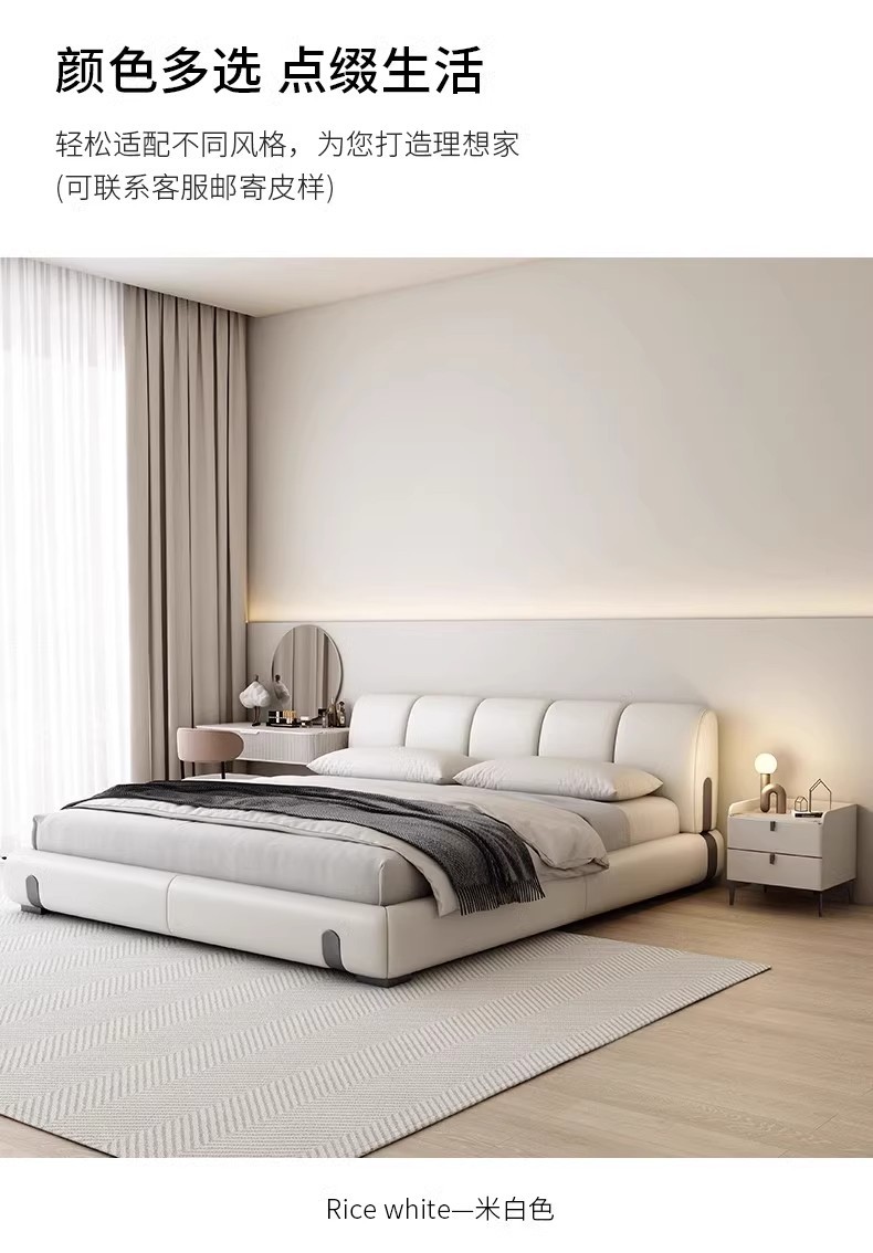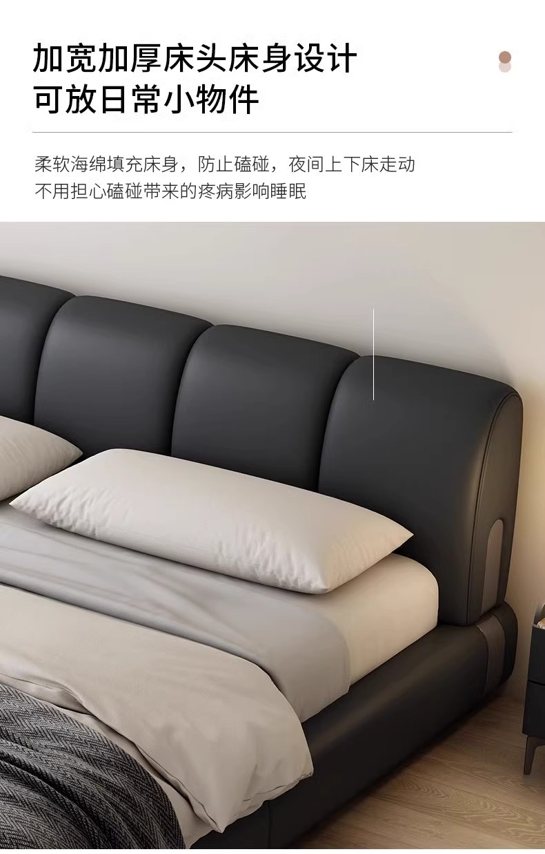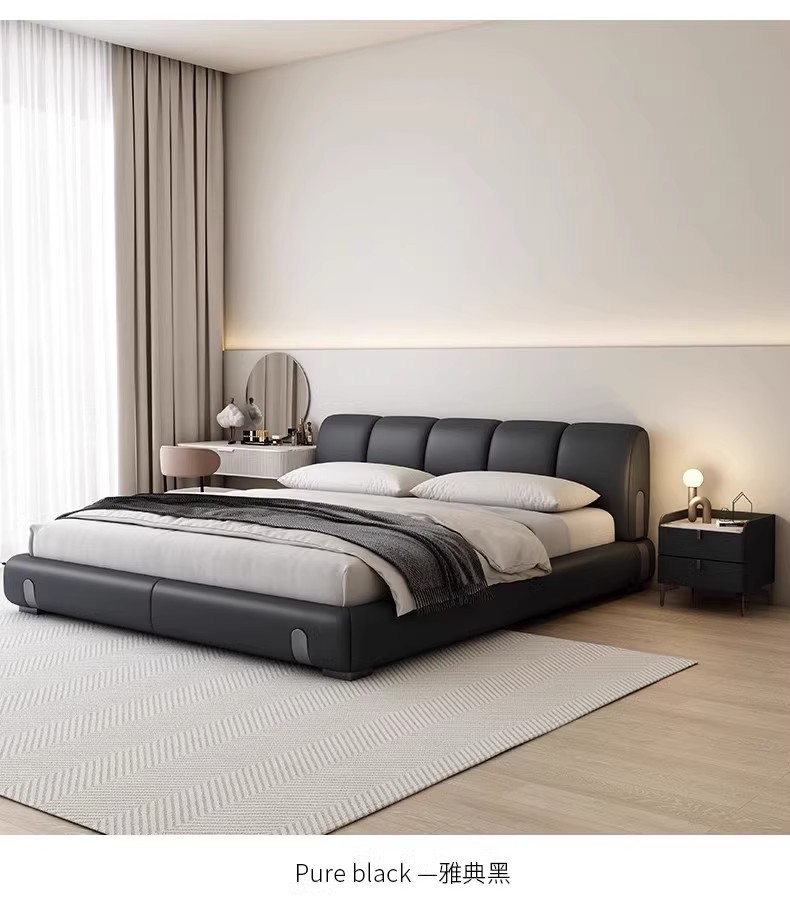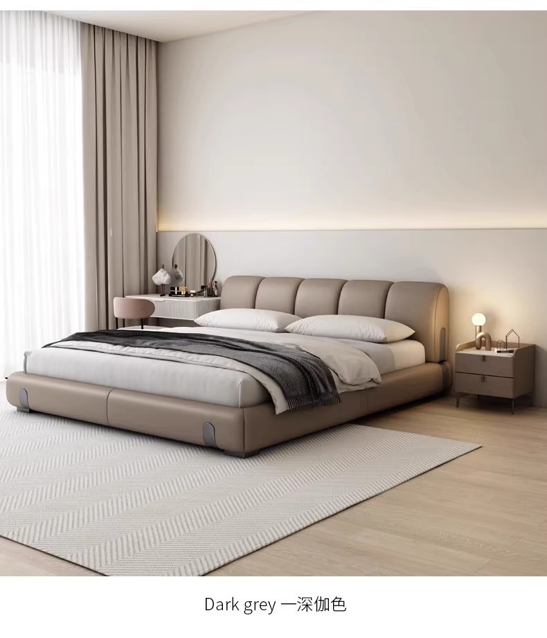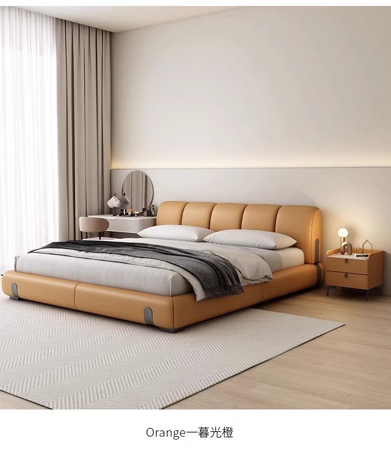 Fábrica de suministro de diseño minimalista italiano cama de cuero real 1.8m simple moderna pequeña cama doble dormitorio principal