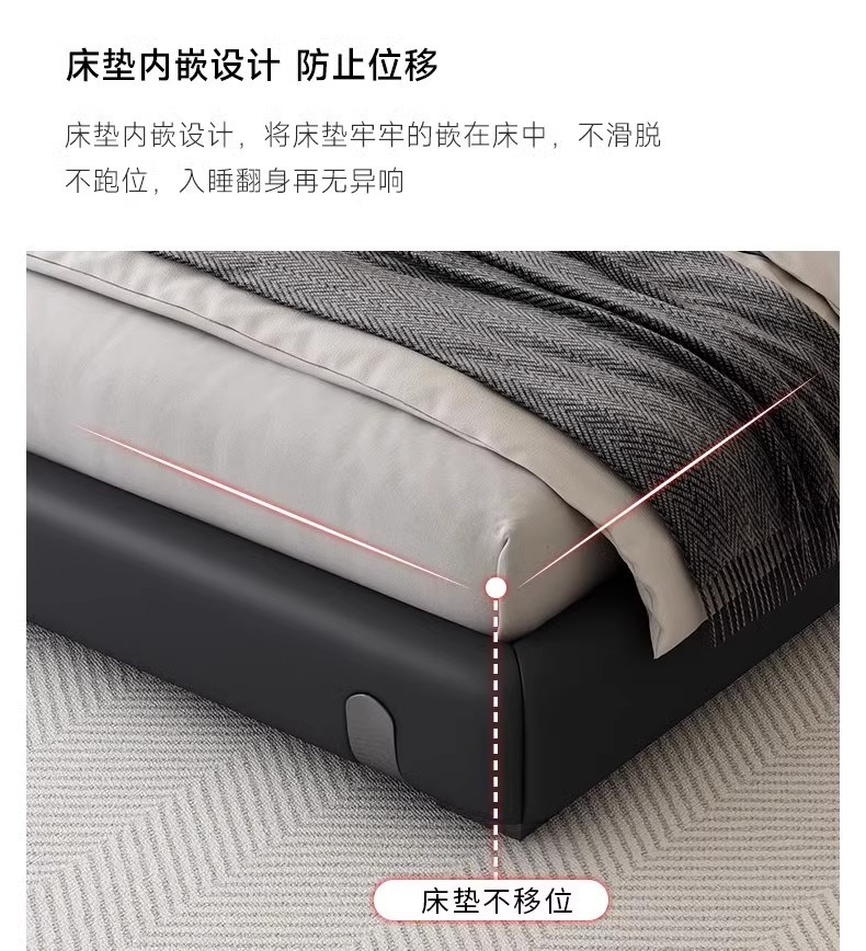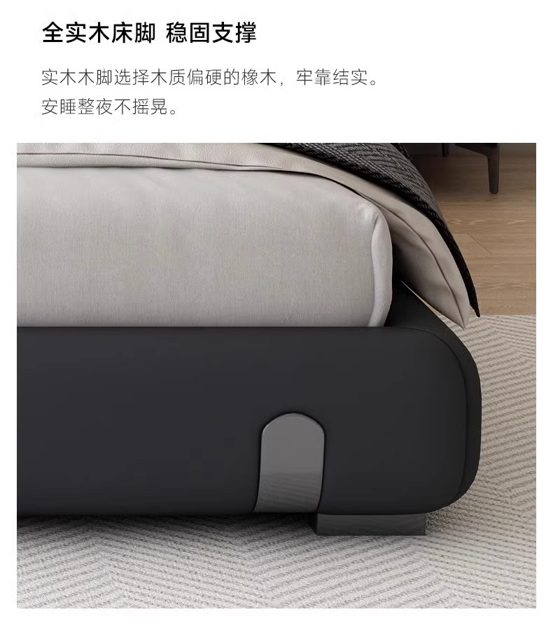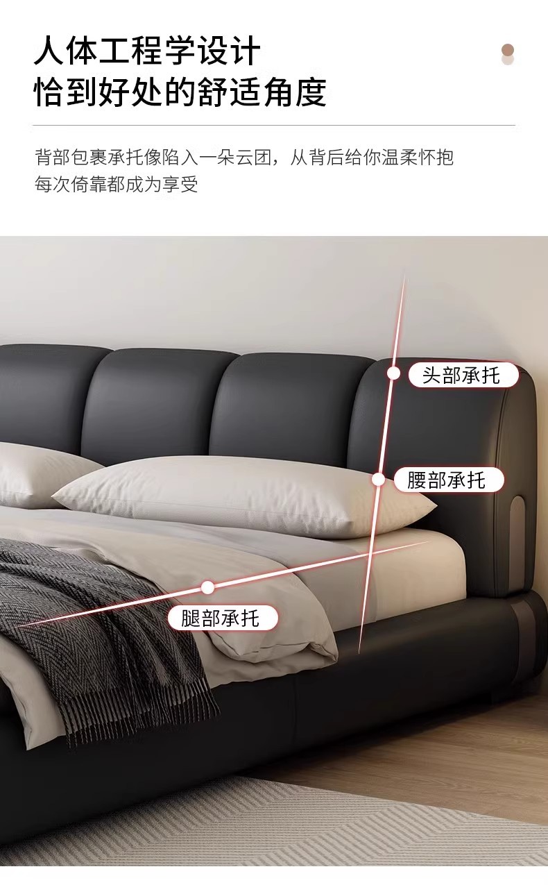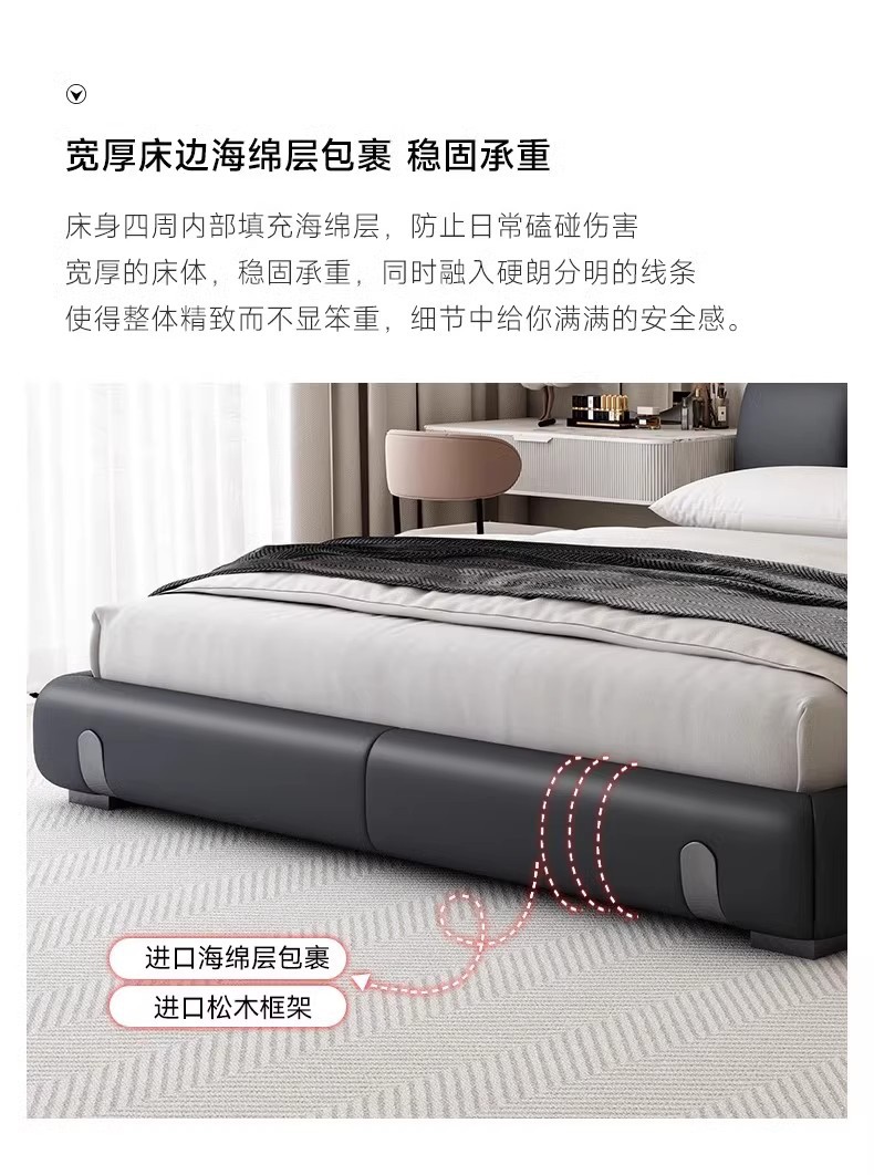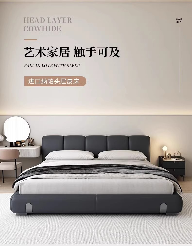 Fábrica de suministro de diseño minimalista italiano cama de cuero real 1.8m simple moderna pequeña cama doble dormitorio principal