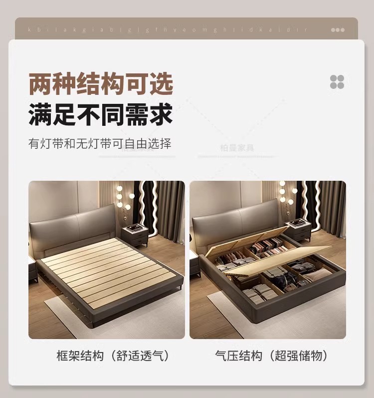 Cama de cuero de estilo italiano minimalista de lujo, 1.5m 1.8 cama doble, cama queen, moderna y simple, cama de boda de almacenamiento suave