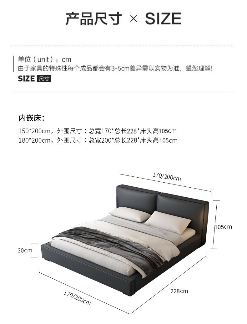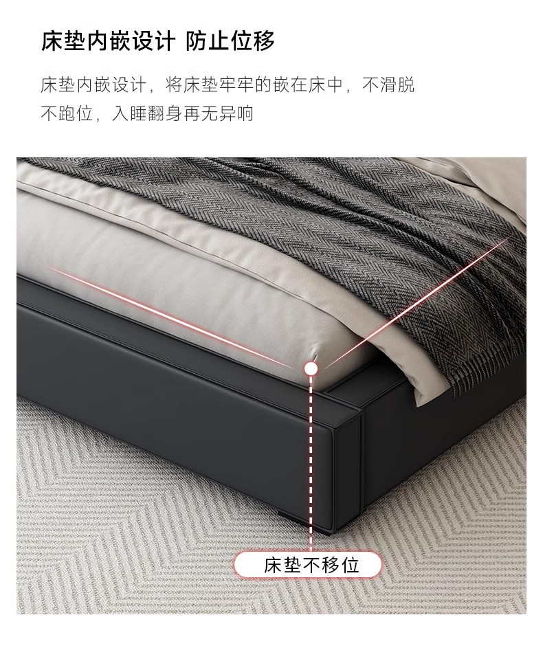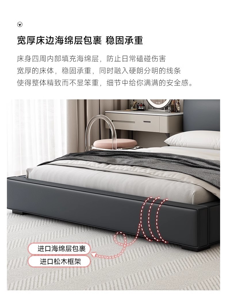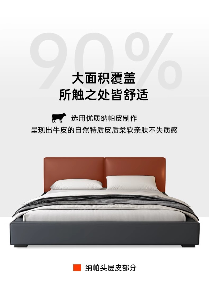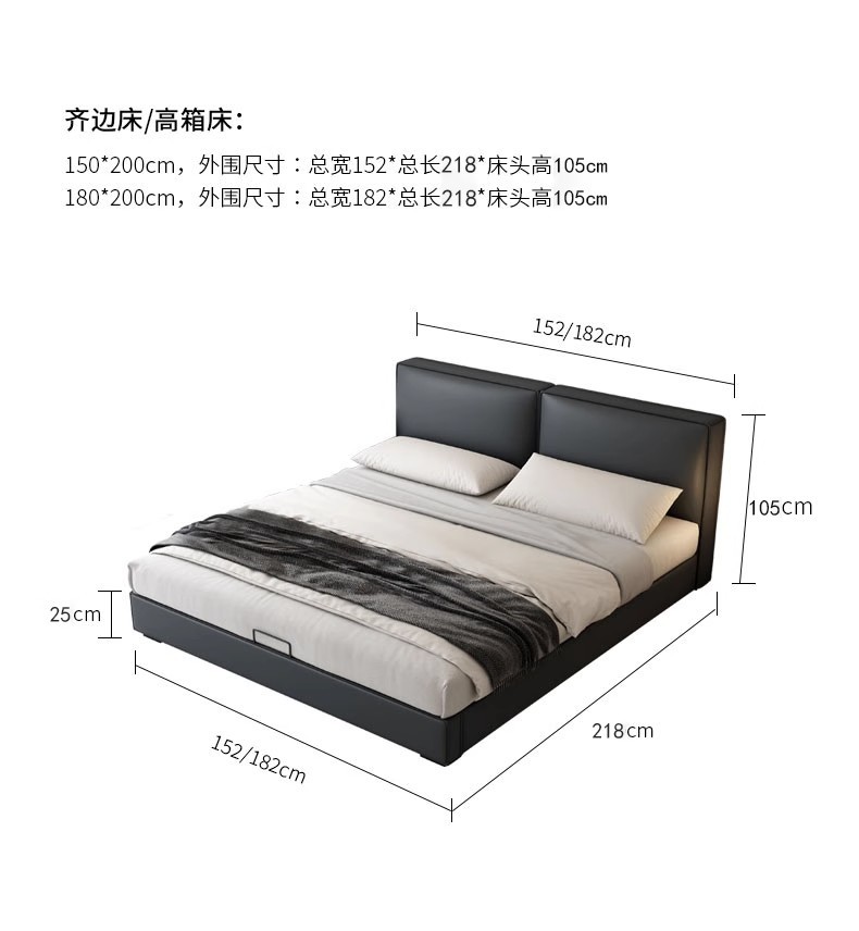 Diseñador minimalista italiano gran cama de cuero negro 1.8m simple y moderno pequeño dormitorio principal almacenamiento cama doble
