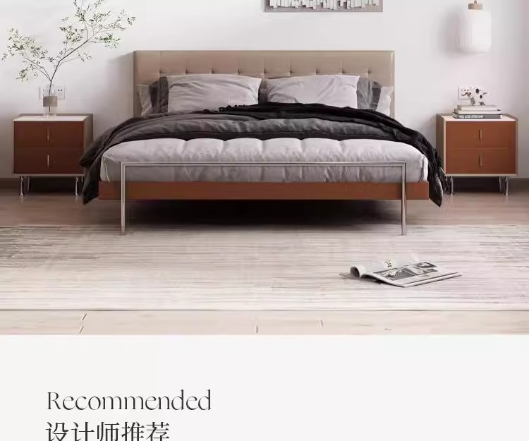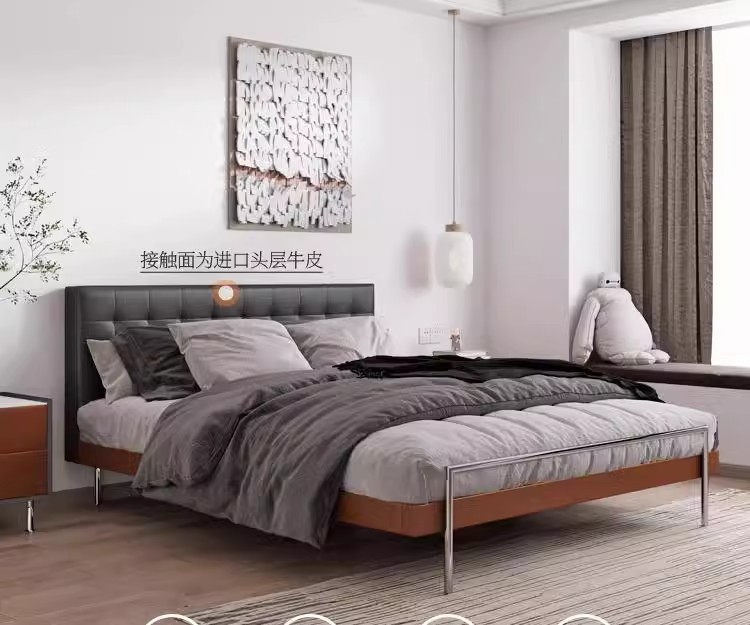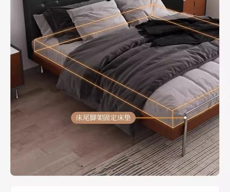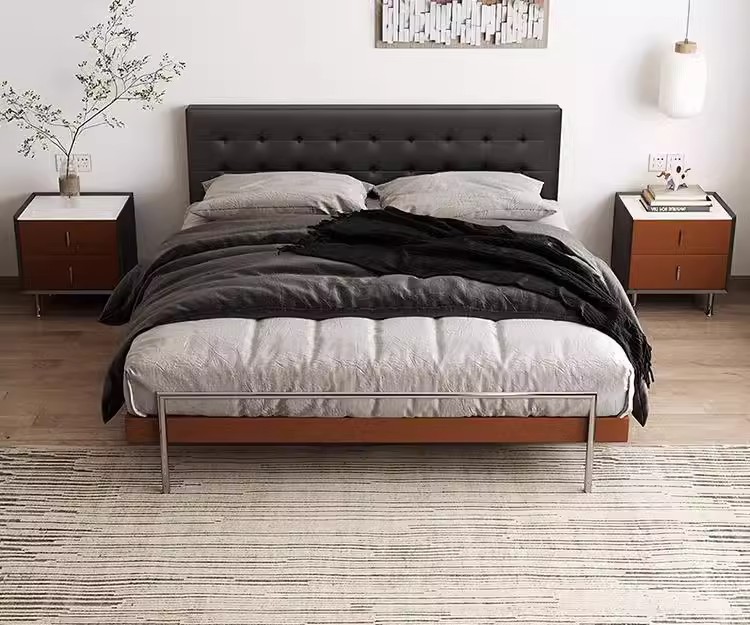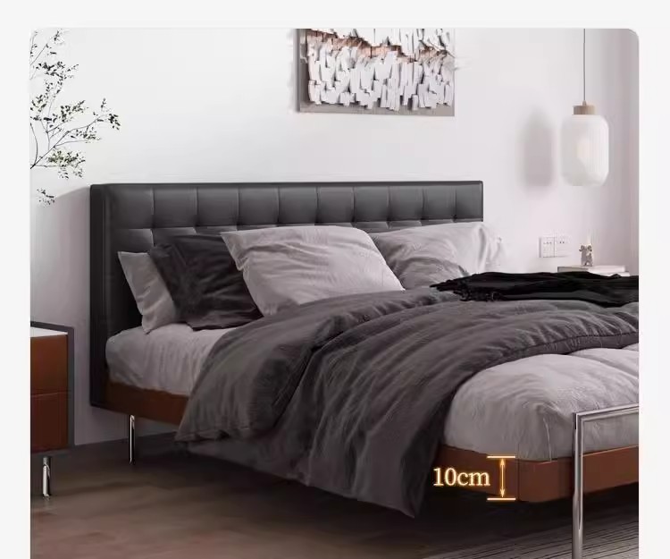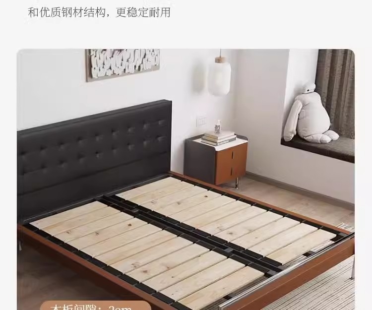 Pequeño apartamento cama de cuero nórdico simple y moderno retro suave cama principal cama de matrimonio cama doble de cuero de 1,8 m