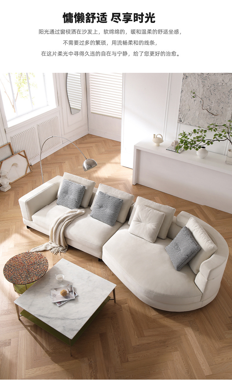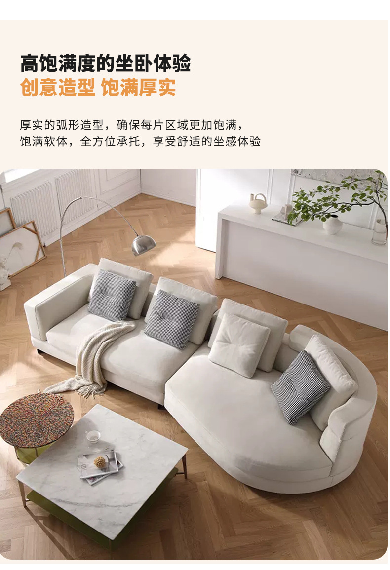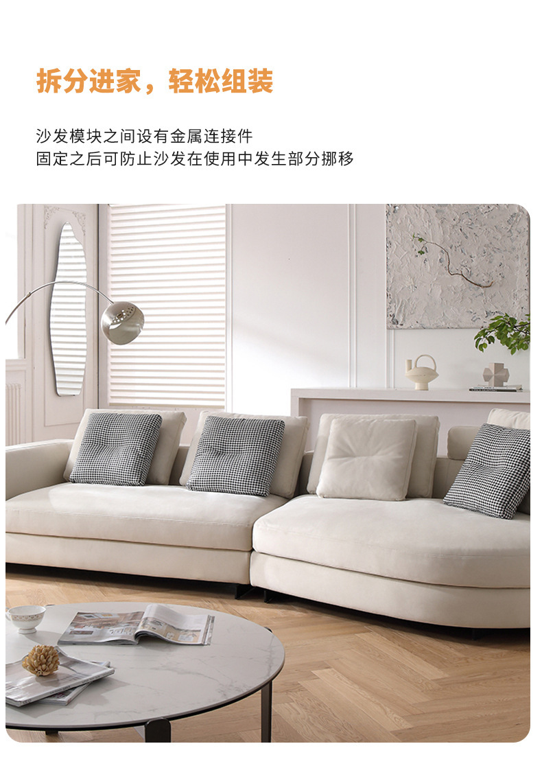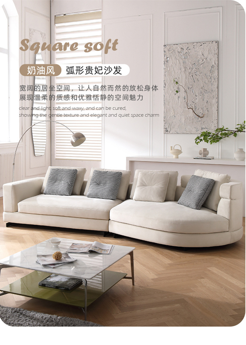 Sofá de tela de diseño sala de estar pequeño apartamento fila recta Luz de lujo moderno simple estilo crema esmerilado sofá de arco circular