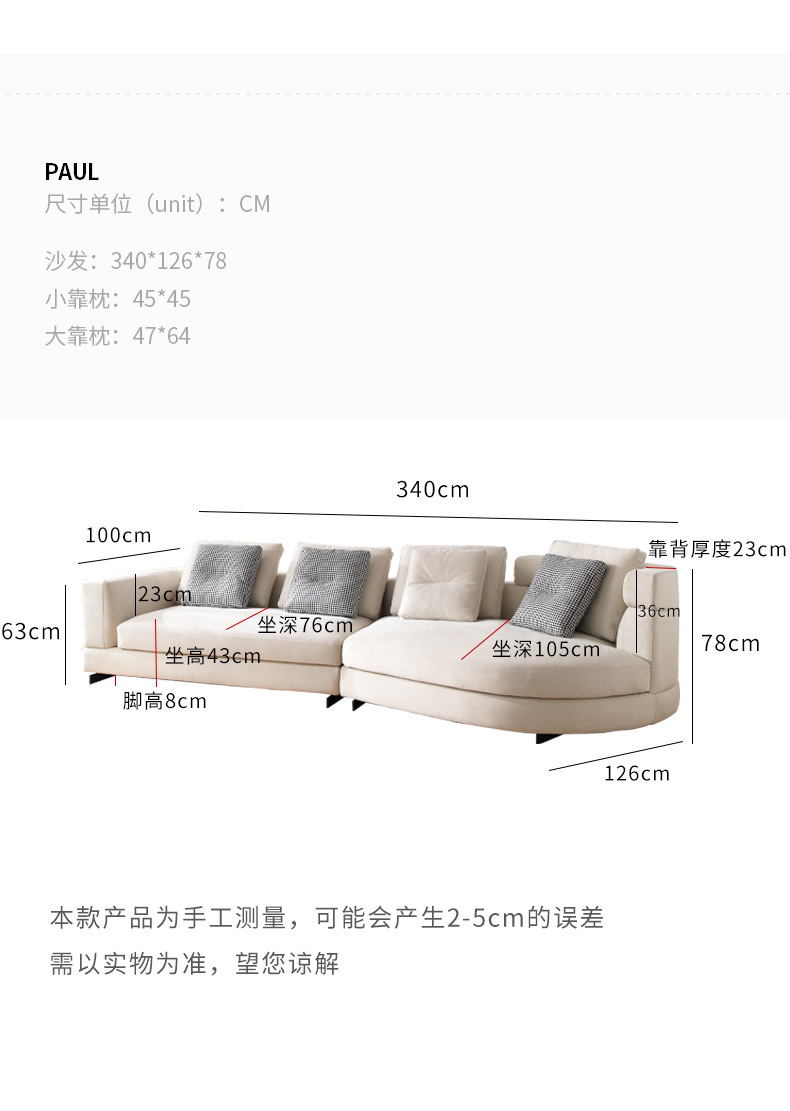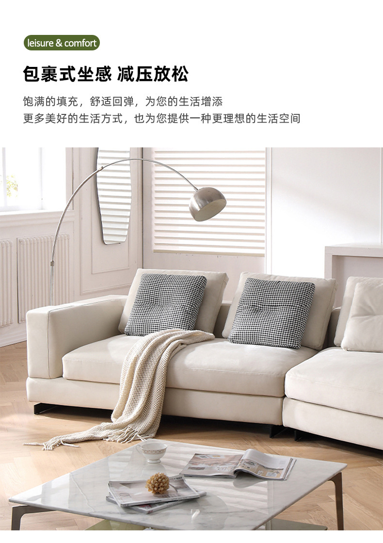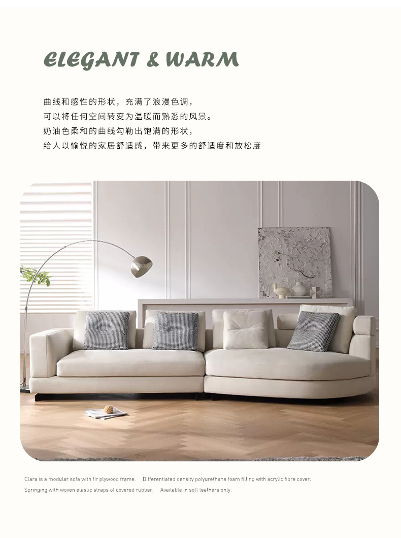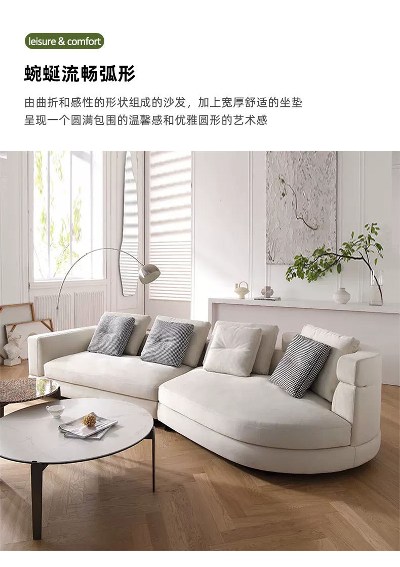 Sofá de tela de diseño sala de estar pequeño apartamento fila recta Luz de lujo moderno simple estilo crema esmerilado sofá de arco circular