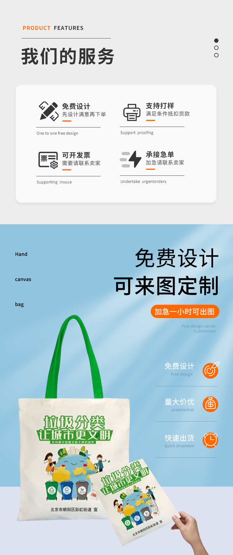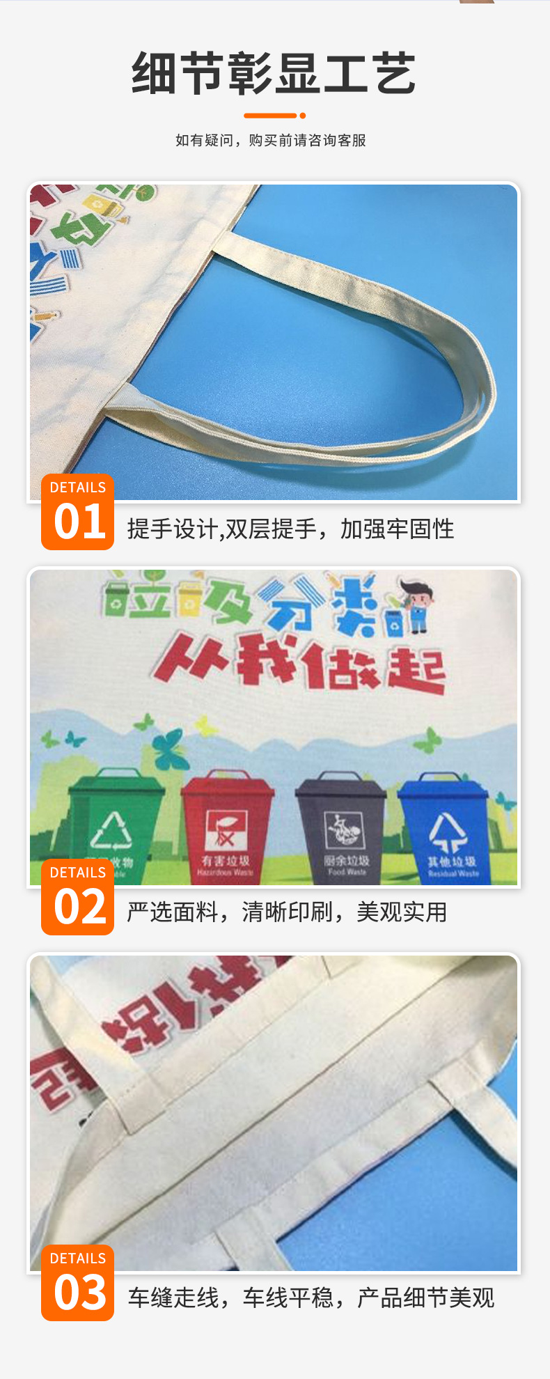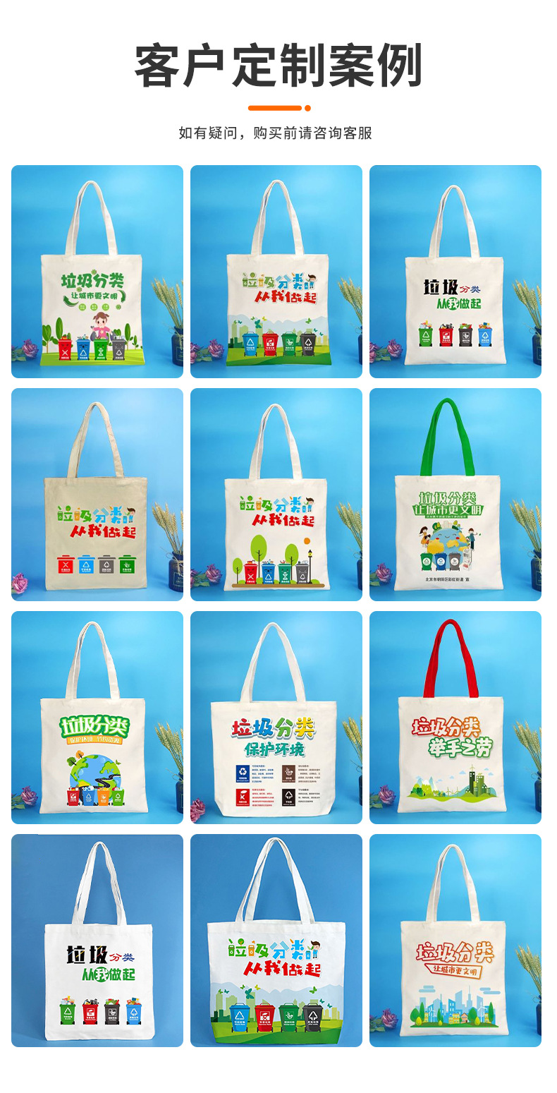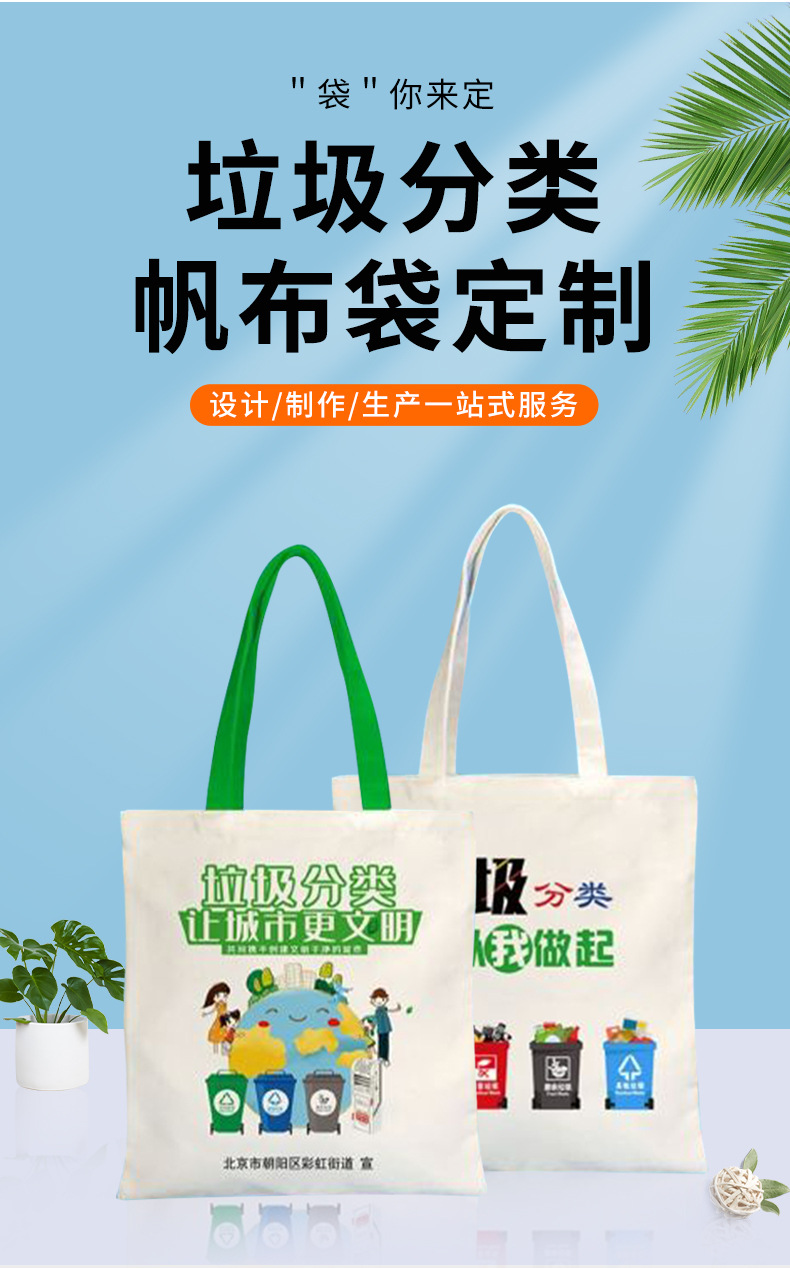 Bolsas de lona personalizadas logotipo de protección ambiental basura clasificación de promoción de protección ambiental portátil bolsa de lona personalizada bolsa de algodón
