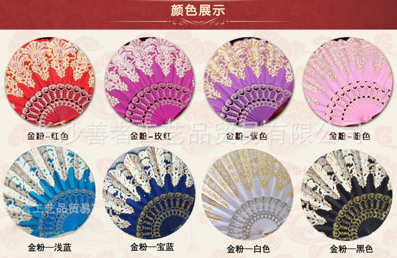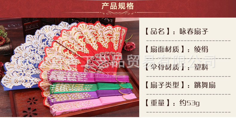 En stock ventilador de baile ventilador de plástico Yongchun ventilador plegable Español ventilador plegable dorado artesanía ventilador Yongchun ventilador