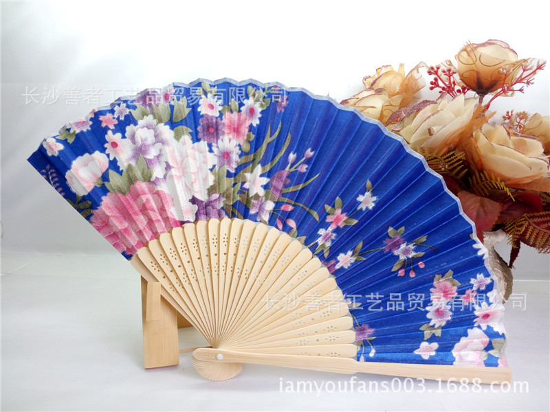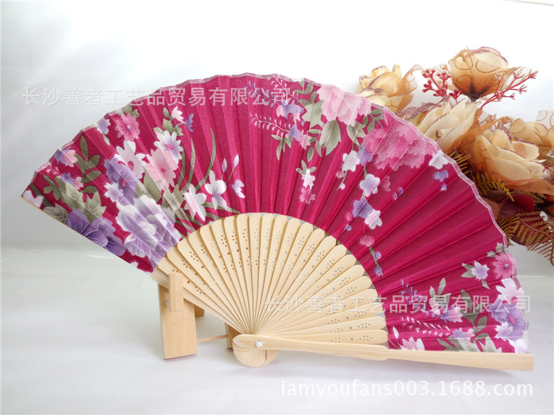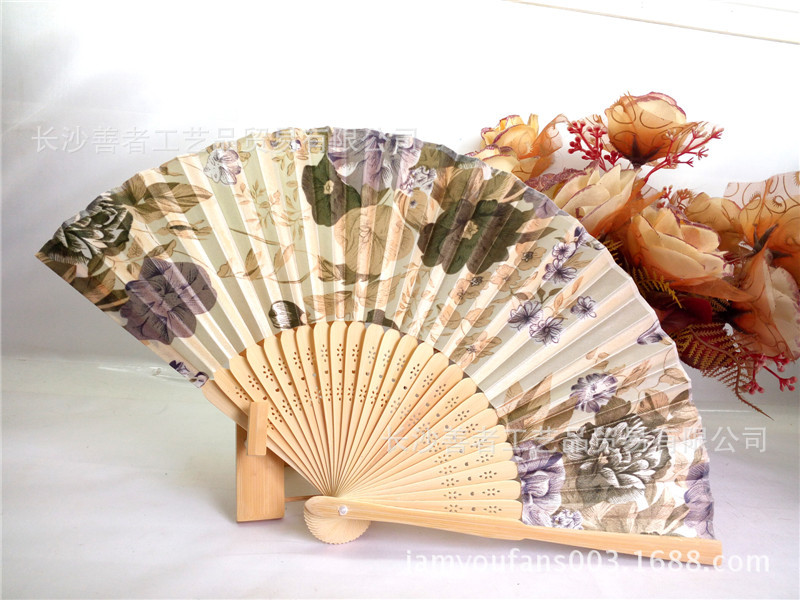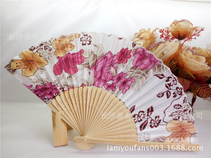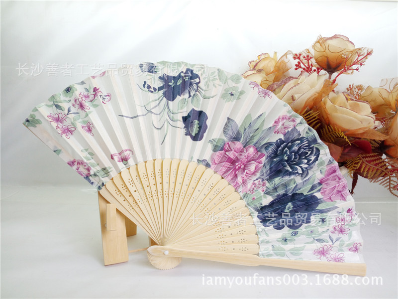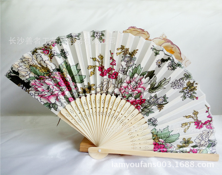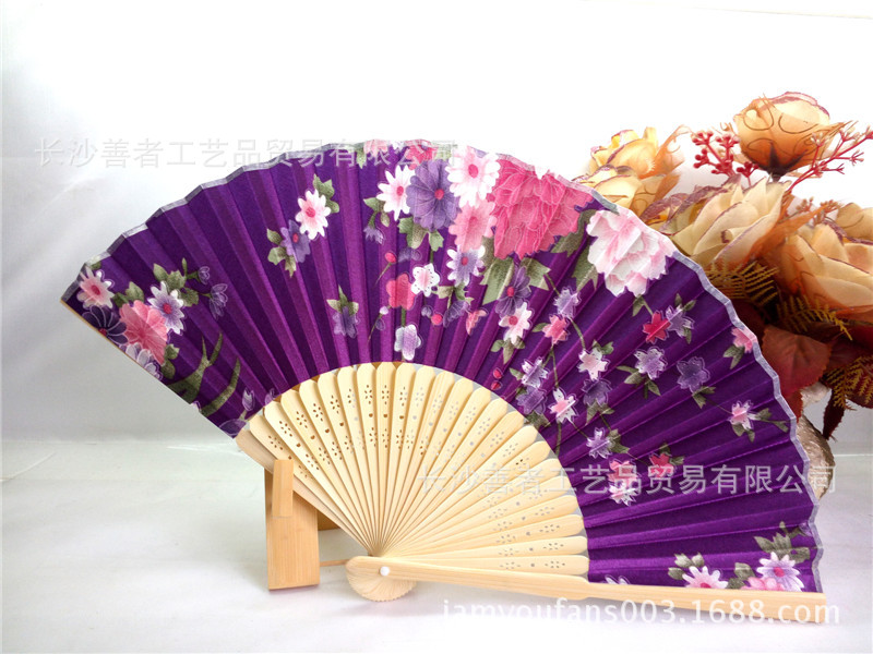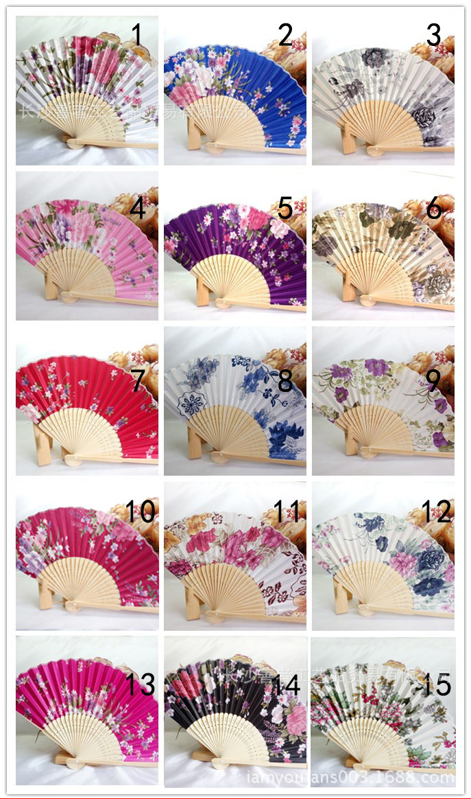 Amazon mango de bambú estilo chino ventilador de seda de las mujeres plegable ventilador de Relaciones Exteriores regalo artesanía ventilador de bambú estilo japonés