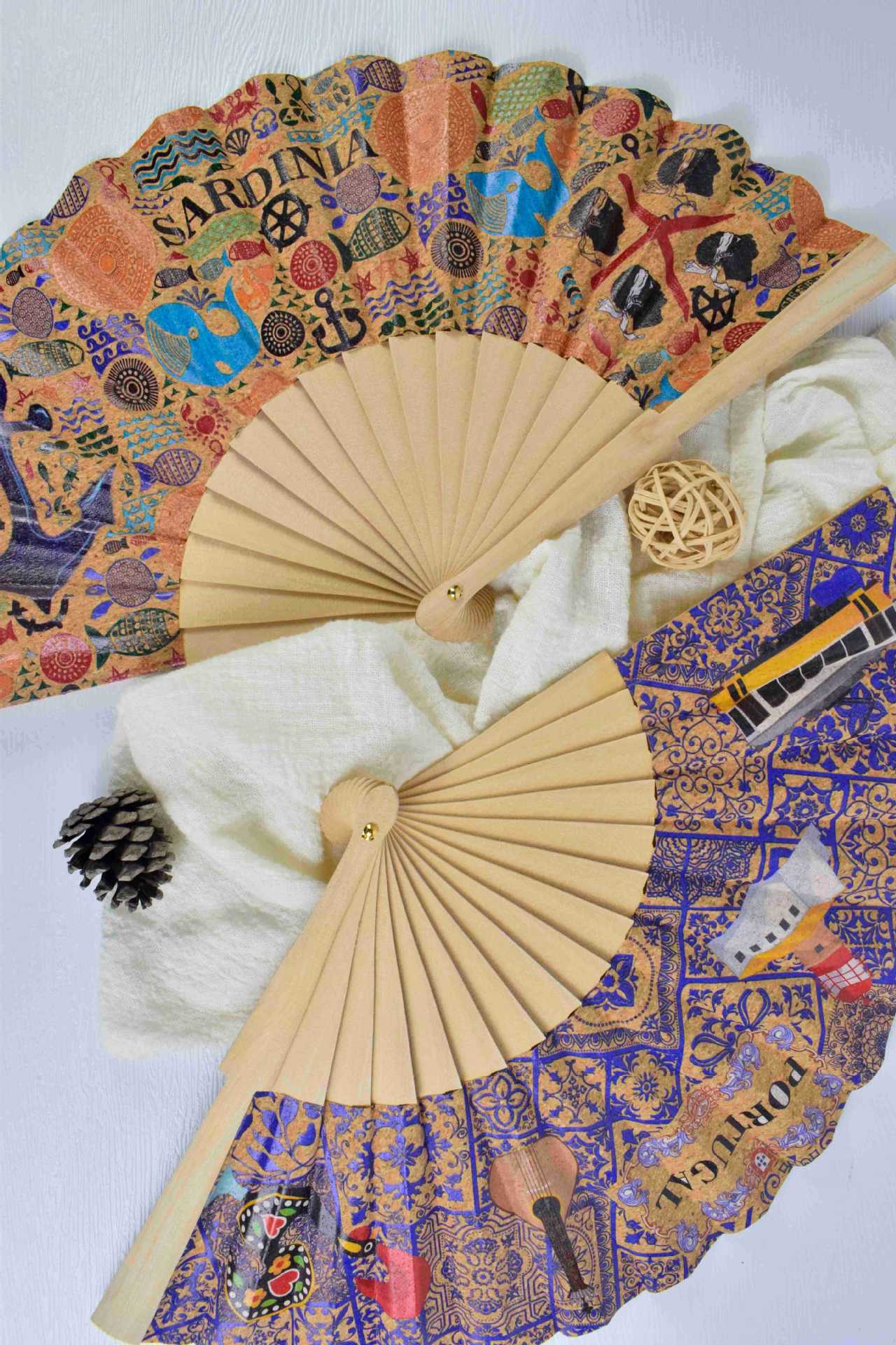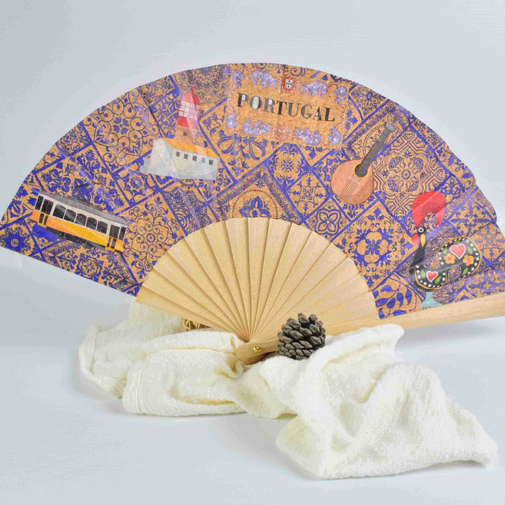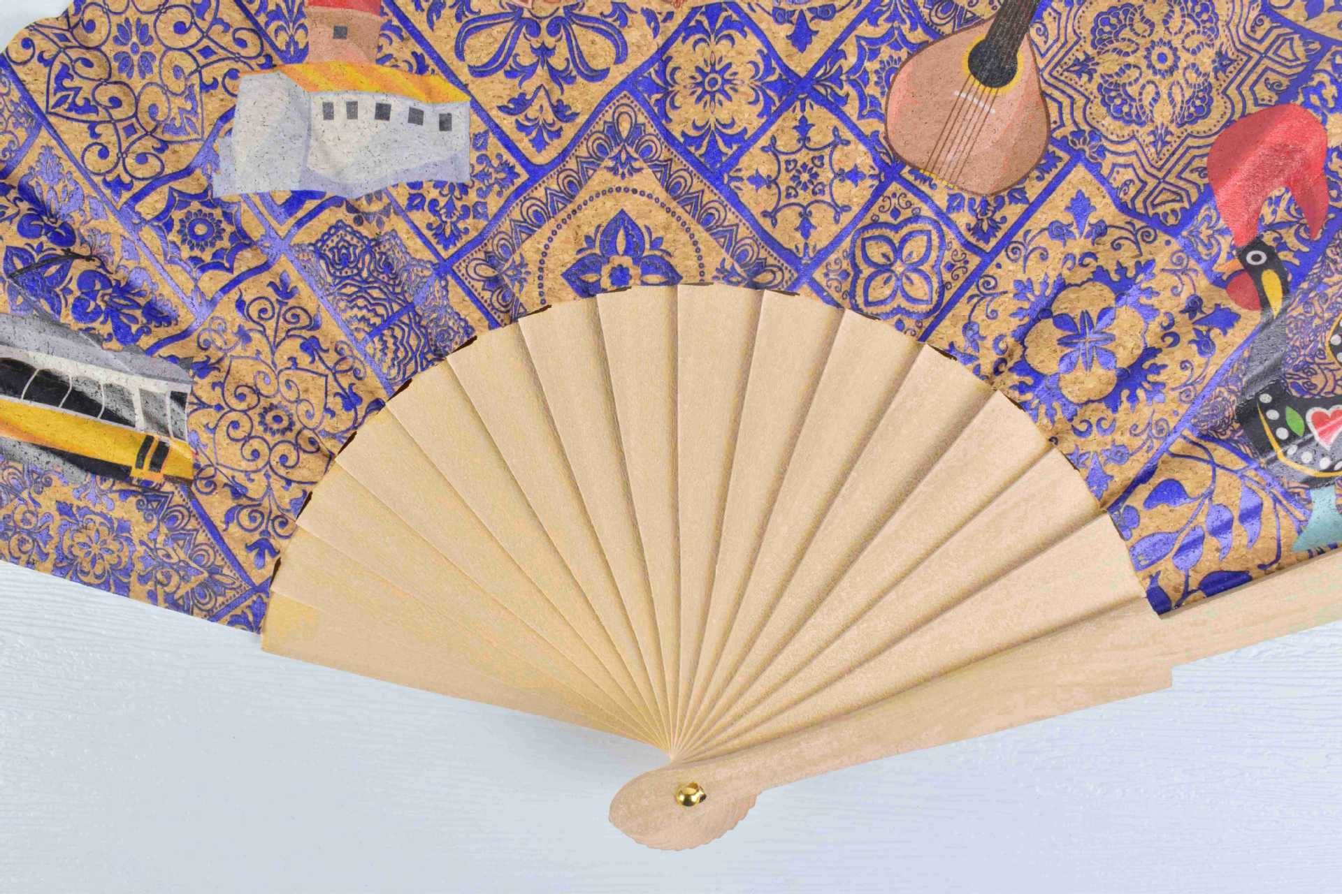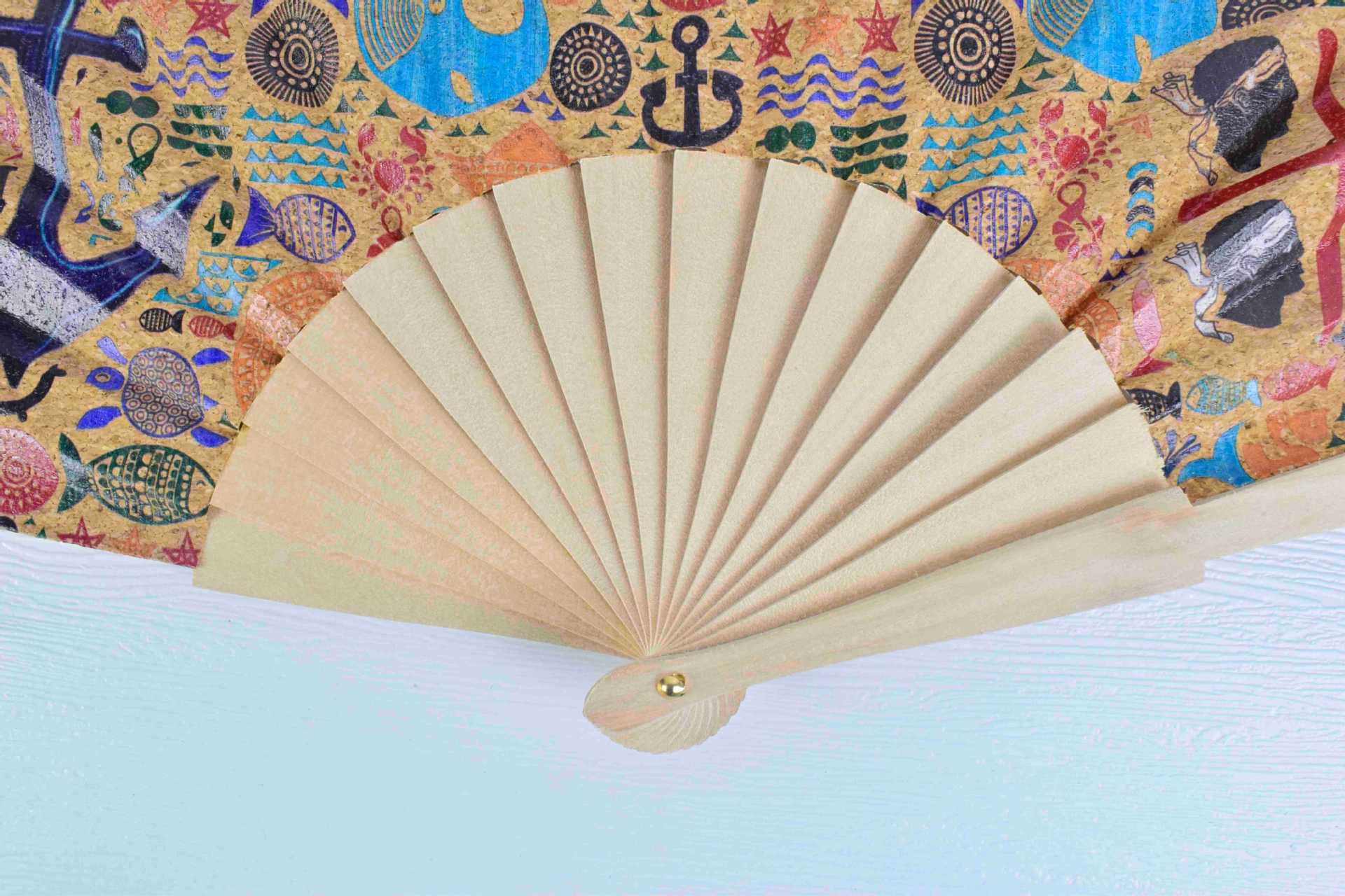Mayorista 16 materiales ecológicos de corcho, ventilador de madera español hecho a mano, hermoso ventilador de regalo de baile fácil de abrir y cerrar