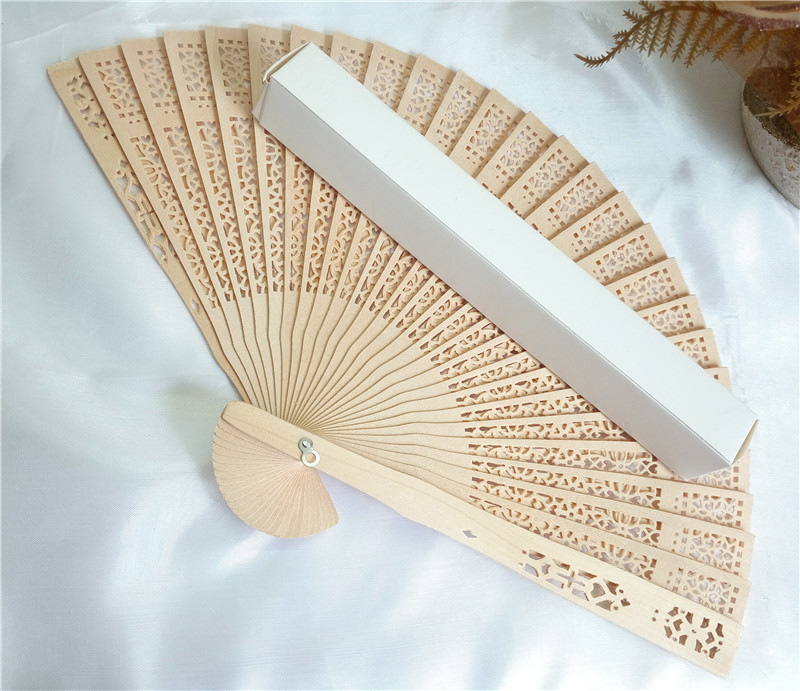 Fuente transfronteriza juegos de boda hechos a mano ventilador DIY teñido ventilador de madera hueco tallado ventilador de madera puede serigrafía