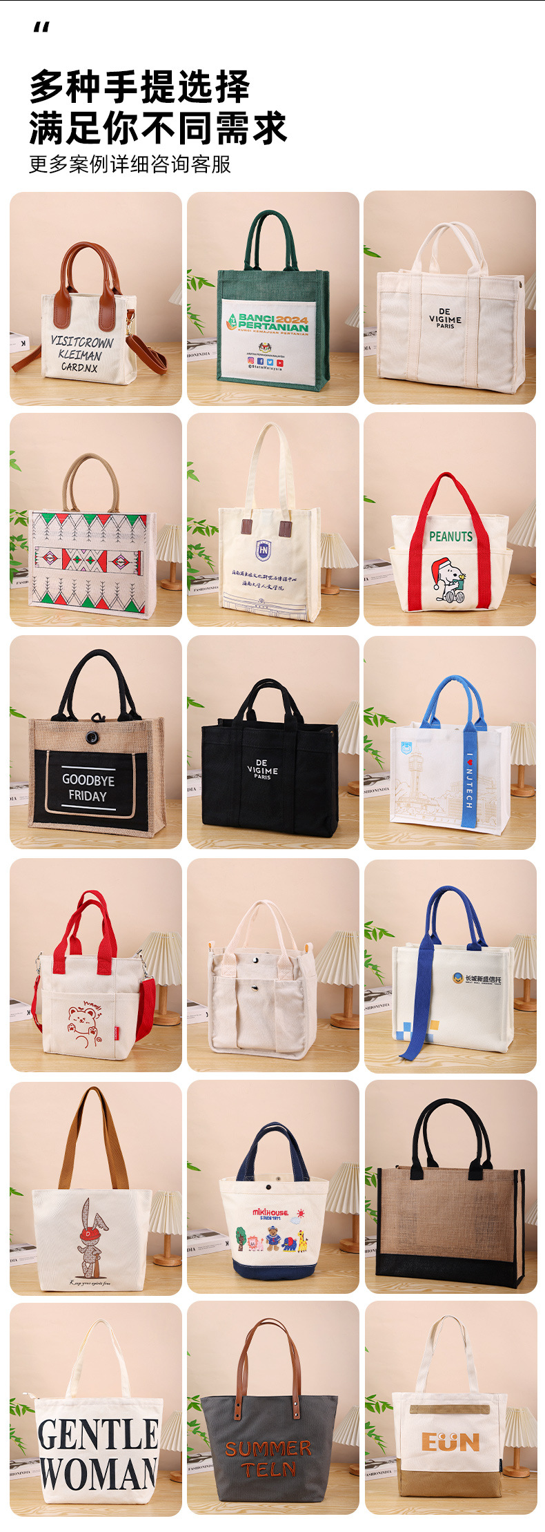 Bolsas de lona portátiles personalizadas tipo de barco bolsas de lona de hombro personalizadas exposiciones empresariales publicidad escuela bolsa de regalo de gran capacidad