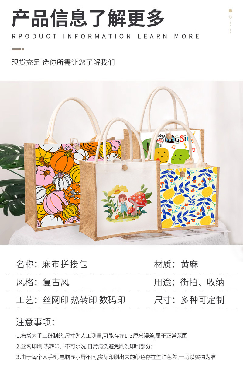 Bolsas de lino en stock lienzo de empalme impresión creativa bolsa de regalo de yute personalizada bolsa de lino portátil de viaje personalizada