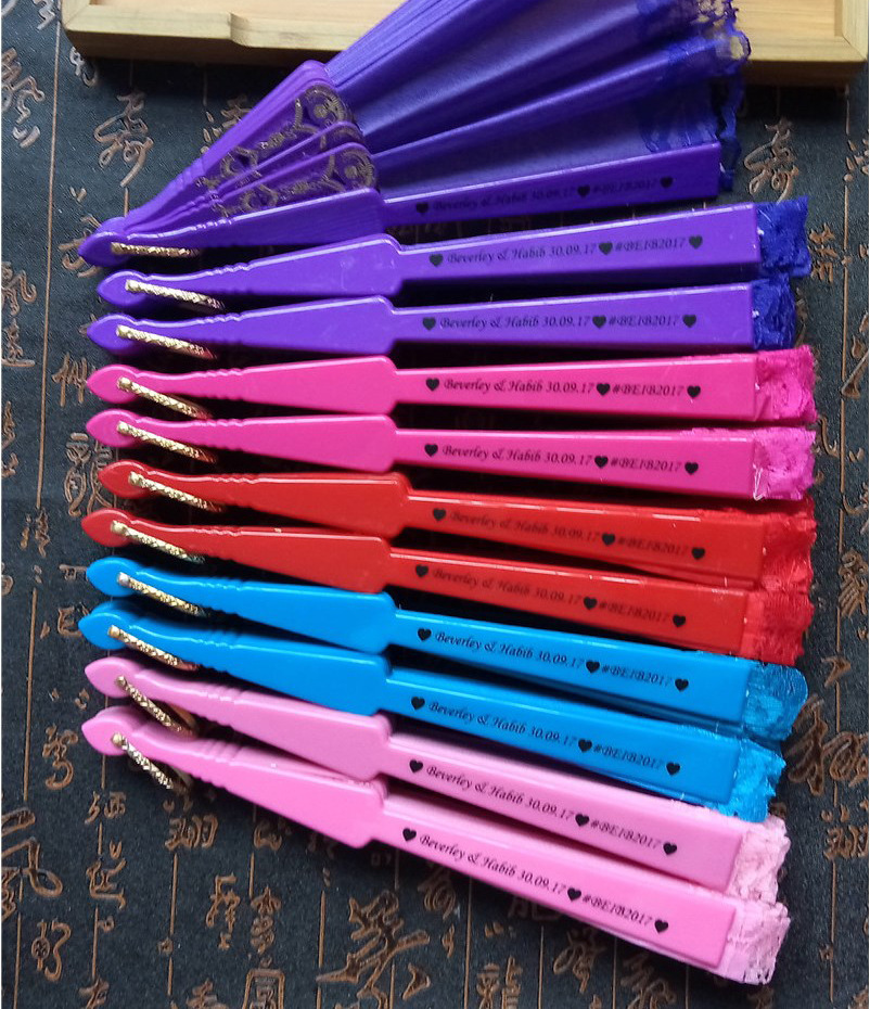 Propósito de disparo en stock ventilador plegable de estilo europeo clásico de plástico de encaje de hueso de doble cara ventilador cheongsam