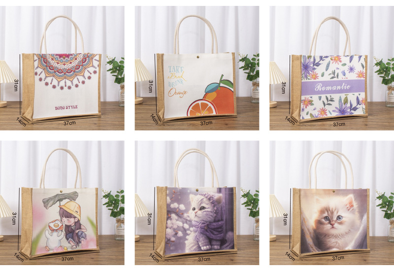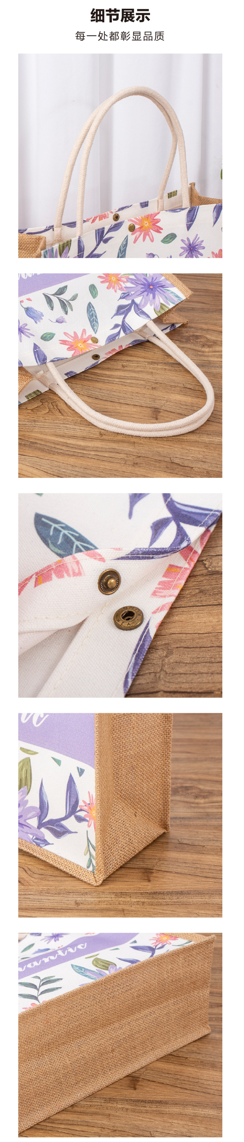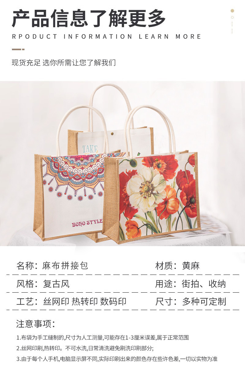 Bolsas de lino en blanco personalizadas empresas publicidad impresión en color patrón bolsas de regalo empalmado lienzo bolsa de lino portátil personalizada