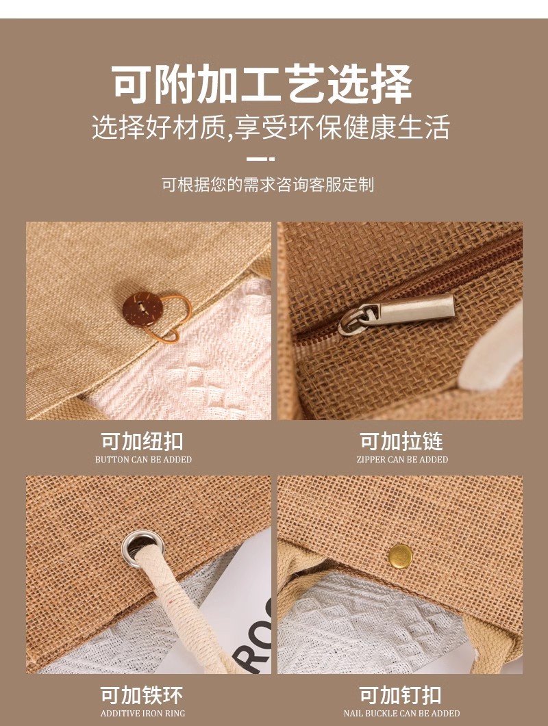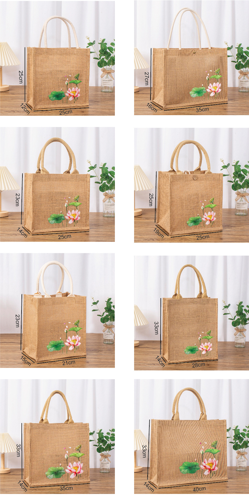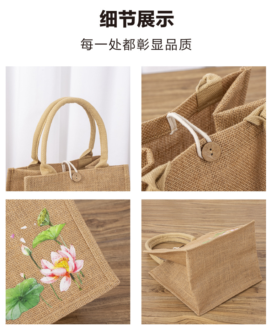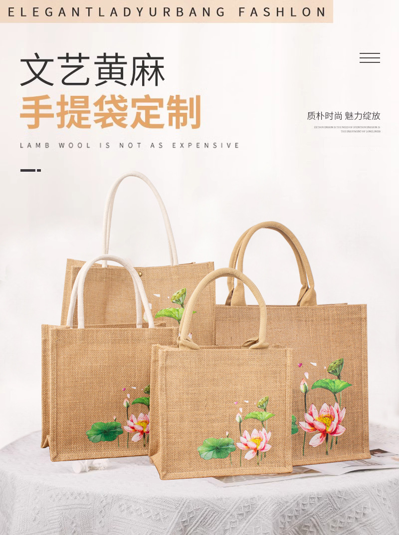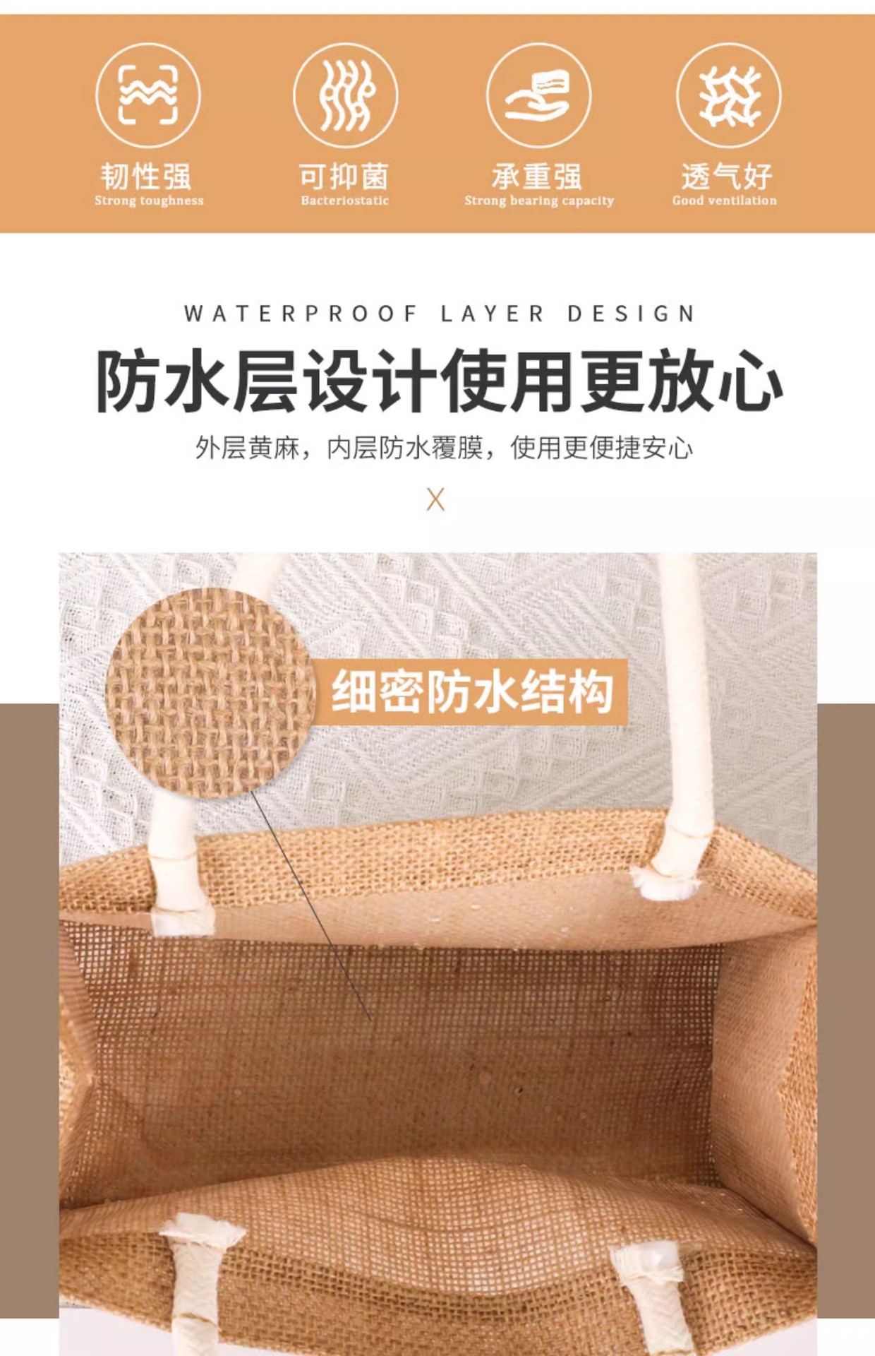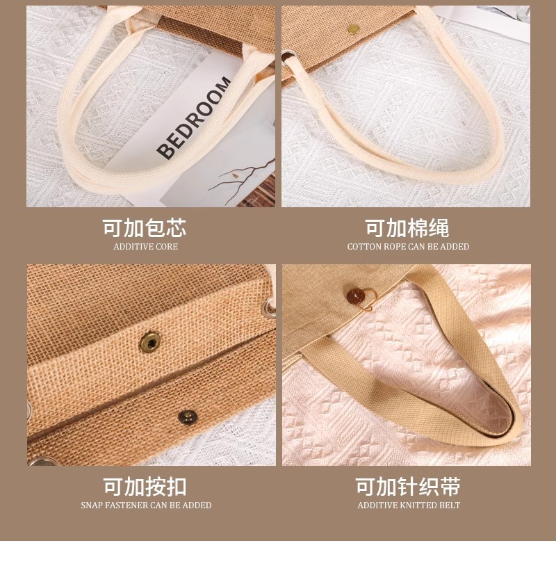 Bolsa de lino portátil en stock de yute cubierto de película de transporte de gran capacidad bolsa de lino personalizada bolsa de regalo de vacaciones