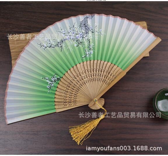 Spot goods cabeza verde sonrisa ventilador dama de seda ventilador plegable ventilador 12 colores opcionales marrón hueso negro cara blanco ciruela