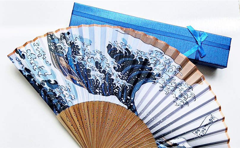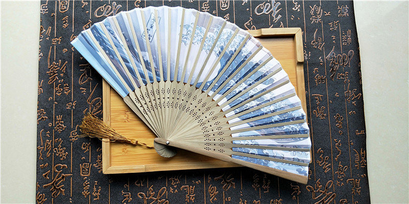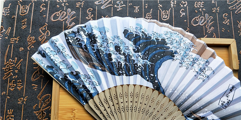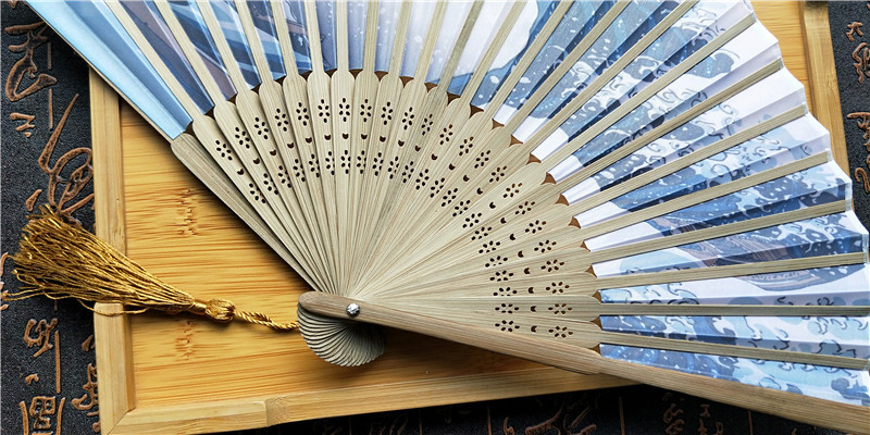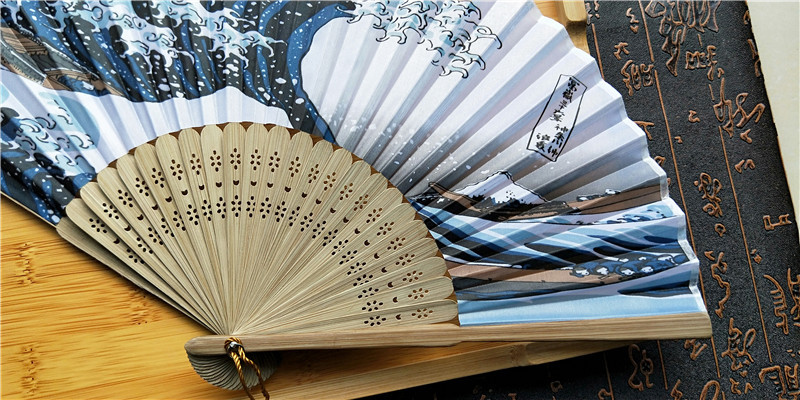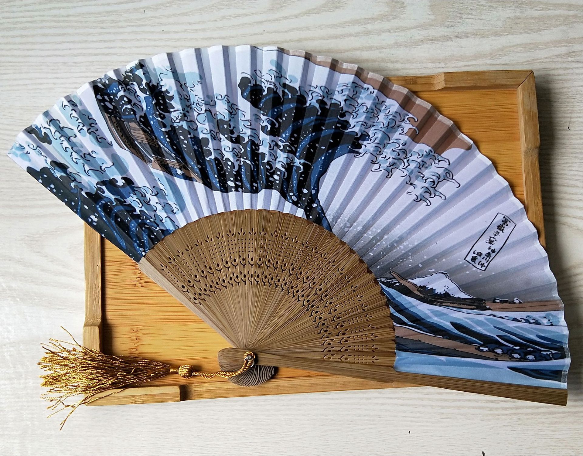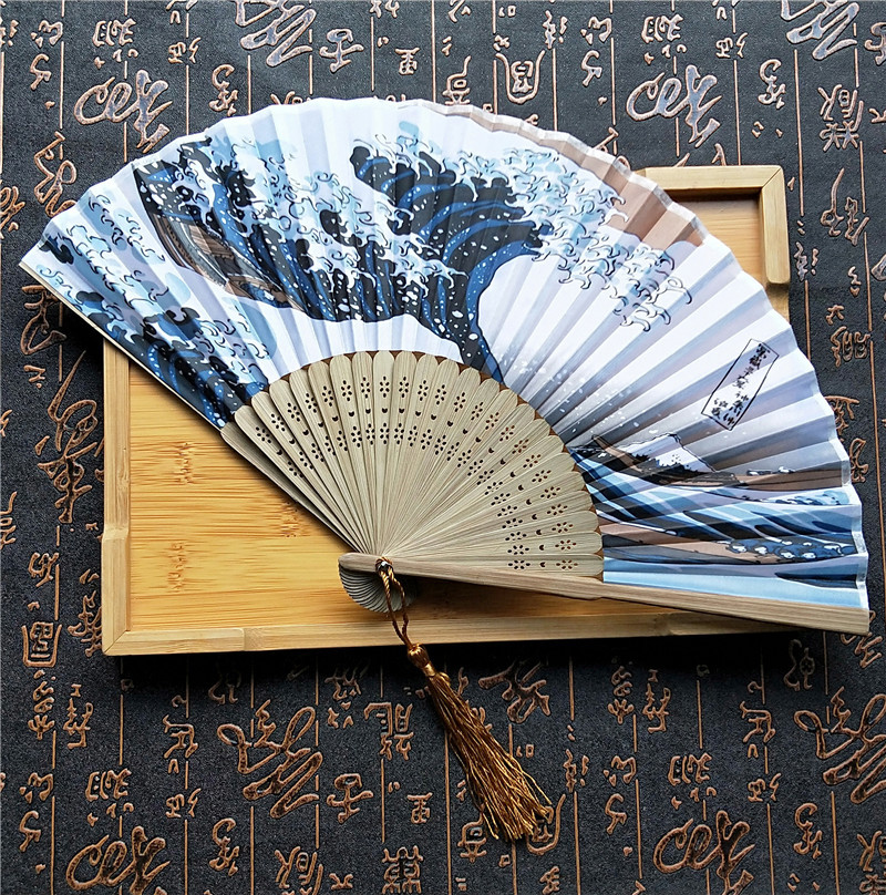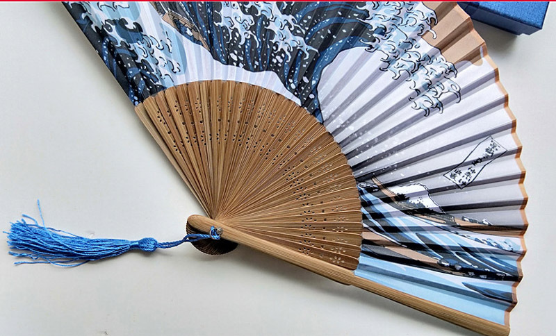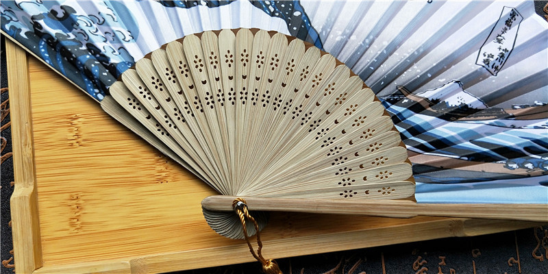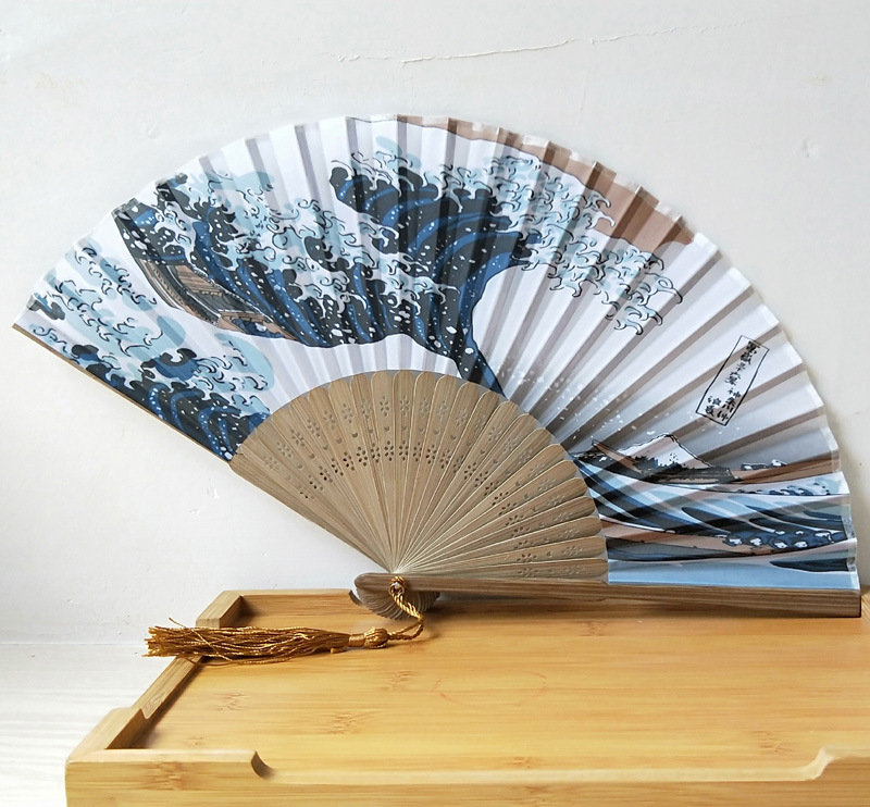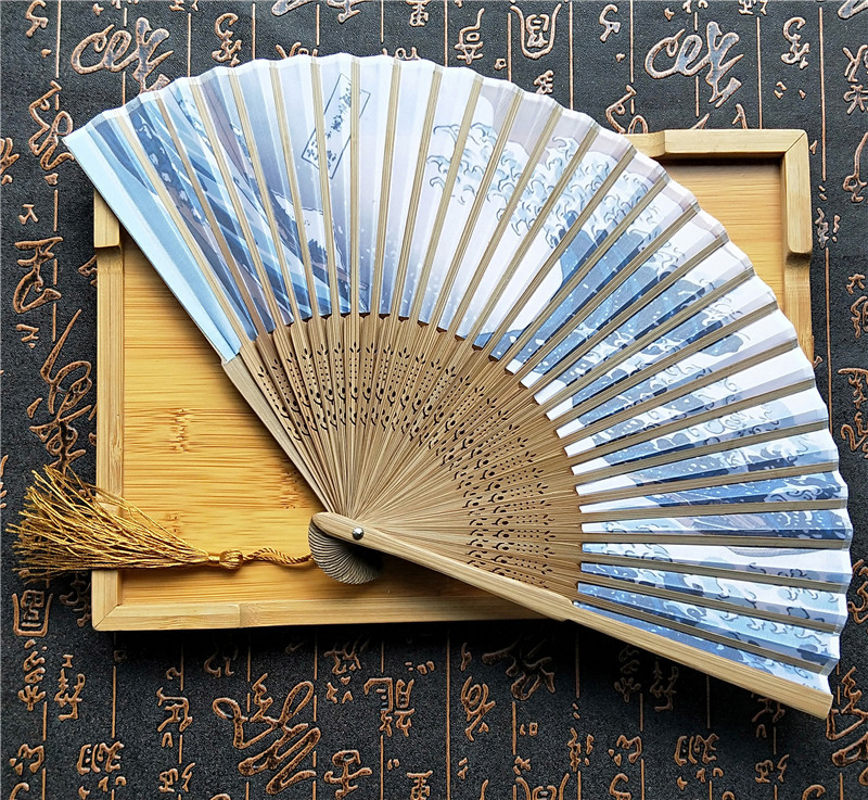 Hay en stock Kanagawa ola fractura de bambú fan canción Xiaozhu transfronterizo pequeño ventilador plegable serie japonesa SEDA-como ventilador de Bambú