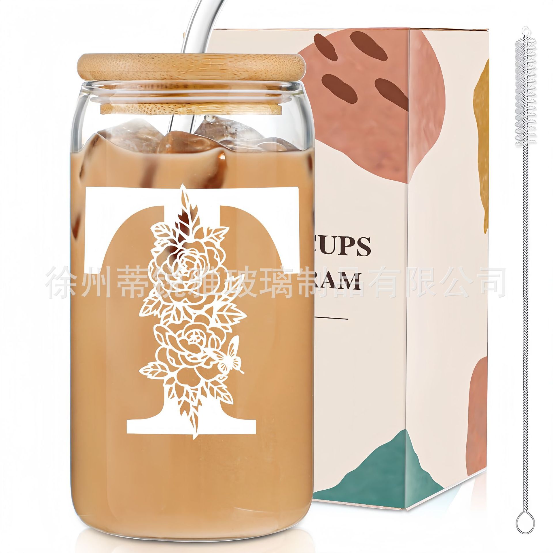 Transfronterizo 16oz Coca-Cola Cup Set con cubierta de paja de alta borosilicona taza de agua de vidrio taza de café de leche taza de vidrio Mason