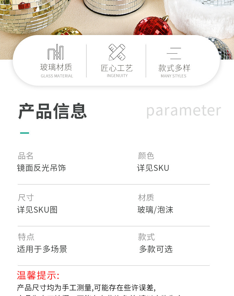 | Color | 7cm de oro (4), 7cm de plata (4), 7cm de rojo (4), 8cm de oro (1), 8cm de plata (1), 8cm de rojo (1), 10cm de plata (1), 15cm de oro (1), 15cm de plata (1), 15cm de rojo (1), 20cm de oro (1), 20cm de plata (1), 20cm de rojo (1), sombrero de Navidad plateado (1), columna plateada (1), broche de oro (1), broche de plata (1), broche de plata (1), broche de plata (1), broche de rojo (1) |