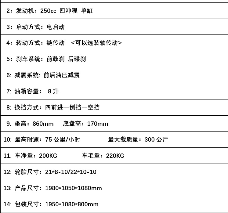 Motocicleta todoterreno de 250cc, vehículo todoterreno, ATV eléctrico, go-kart de cuatro ruedas, gran cilindrada 250