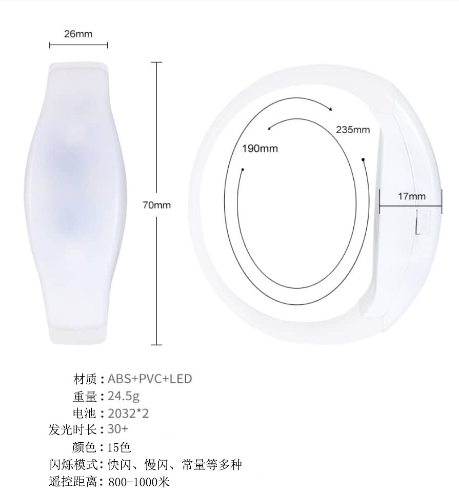 Pulsera luminosa LED de control remoto DMX personalizada, apoyo para actividades de concierto, accesorios de vítores, Bracelet LED