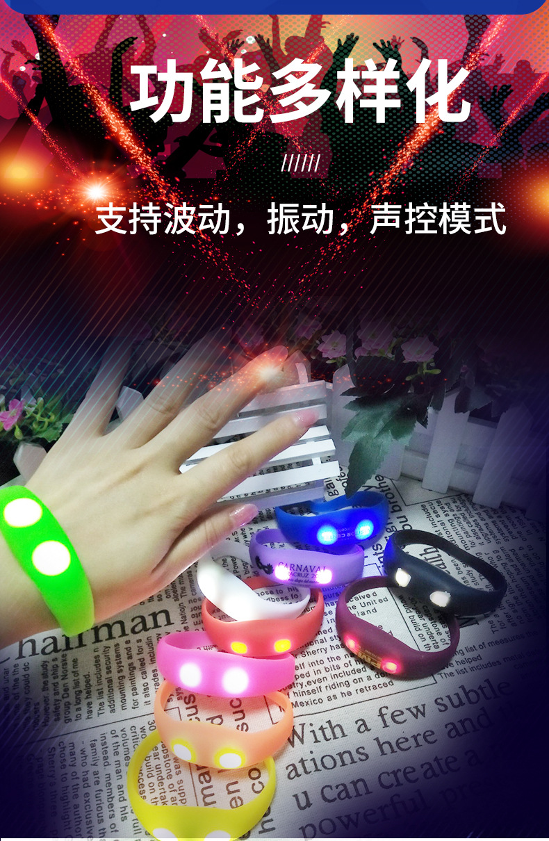 8 colores opcionales de control de voz de silicona pulsera luminosa logotipo personalizado regalo de concierto prop led pulsera luminosa botón